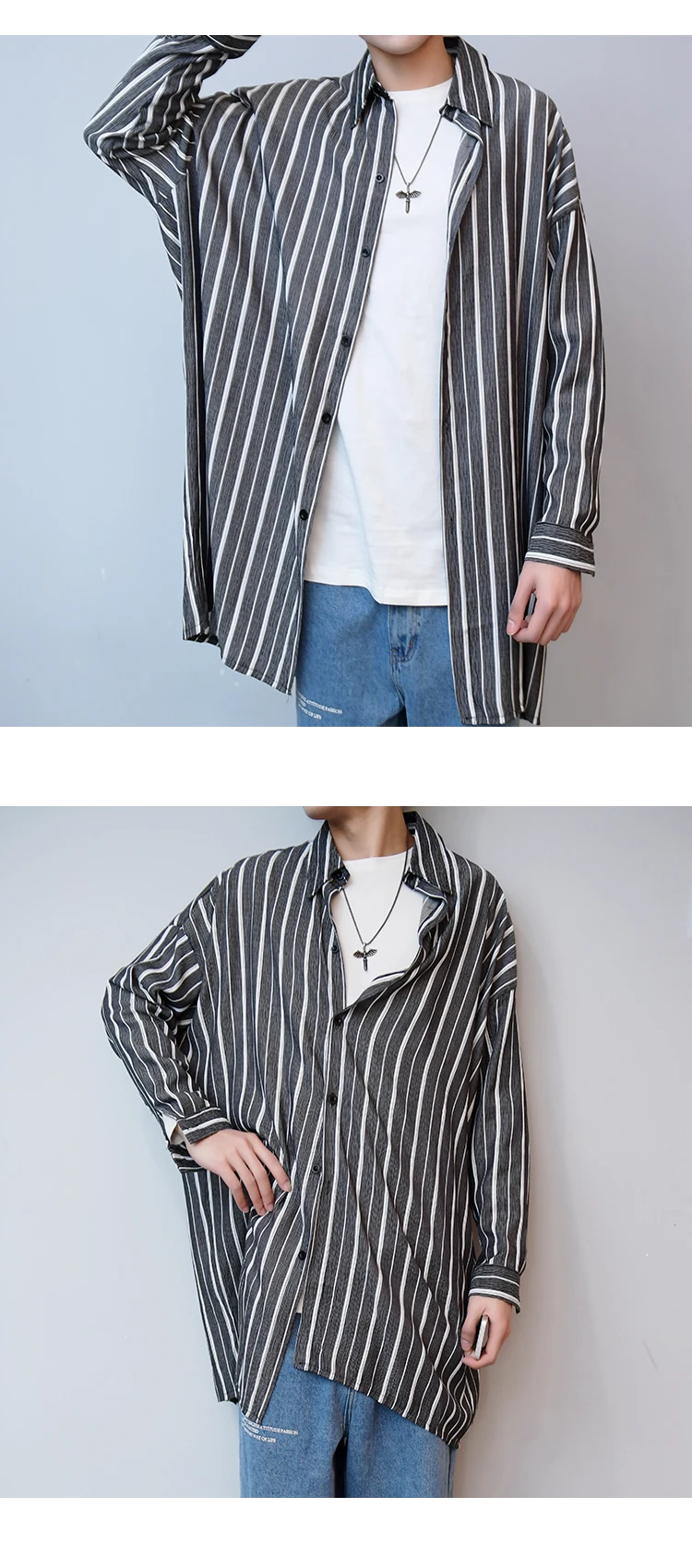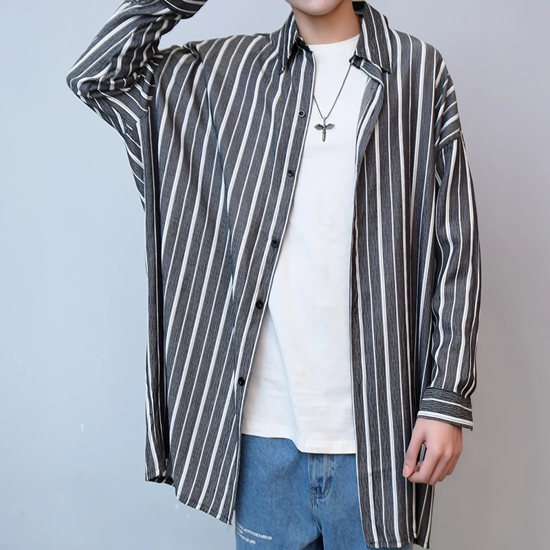 Рубашка в полоску, свободная, в Корейском стиле, на весну и лето, M-XL