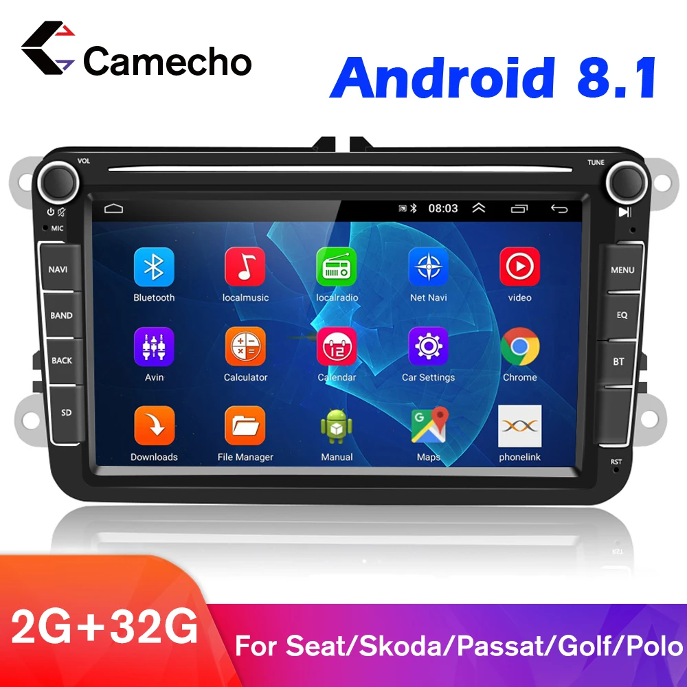 Автомагнитола Camecho, 2 din, Android 8,1, мультимедийный плеер MP5, GPS-навигация, Wi-Fi, Авторадио для VWVolkswagenGolfPoloPassatb7b6SEAT