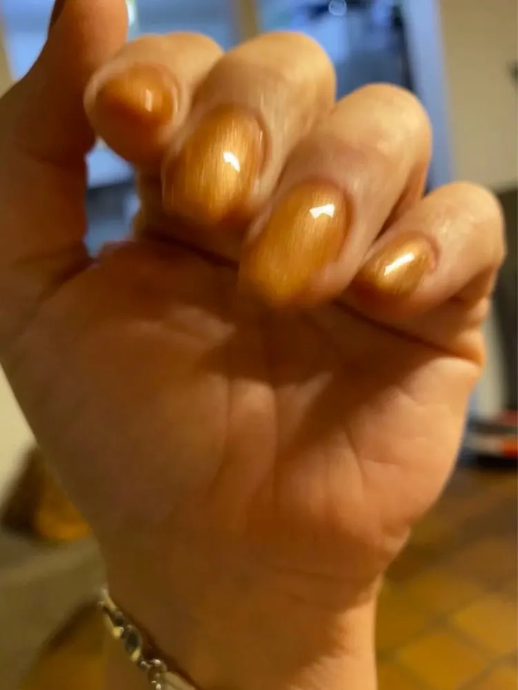 Доставка быстрая. Продавец отправил товар без задержки. Отслеживалась до получения в почтовом отделении адресатом. Пришла без повреждений. Точное соответствие с фото продавца. Качество лака отличное. Наполняемость пузырька отличная. Пузырек стекло. Шикарный гель-лак с шиммером карамельного цвета. Очень красиво блестит, красивый цветной перелив, блестки на свету шикарно переливаются. Консистенция очень хорошая. Товаром очень довольна. Я в восторге! Буду заказывать еще и другие цвета. Спасибо продавцу за отличное обслуживание. Очень рекомендую товар и продавца.