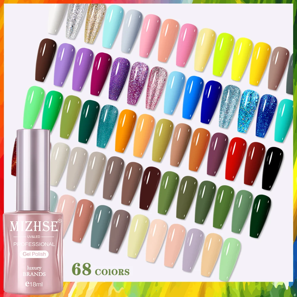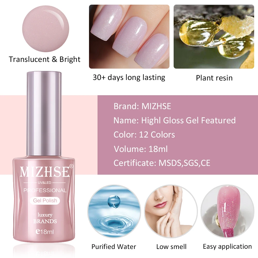 MIZHSE 18 мл Гель-лак для ногтей высокий Глянец Ультрафиолетовый гель с блестками Лаки Полупостоянный Маникюр отмачиваемый лак для ногтей нужно базовое верхнее покрытие