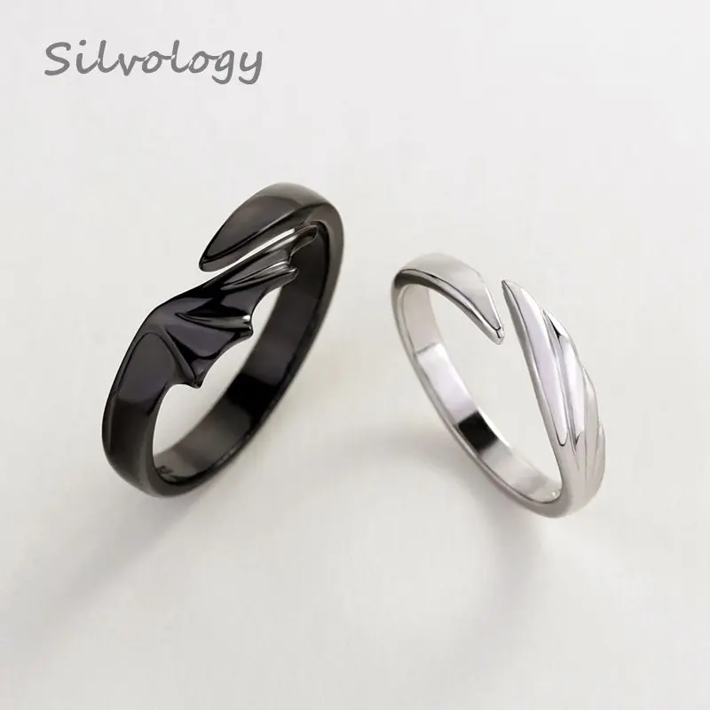 Серебряные кольца в виде ангела и дьявола для влюбленных