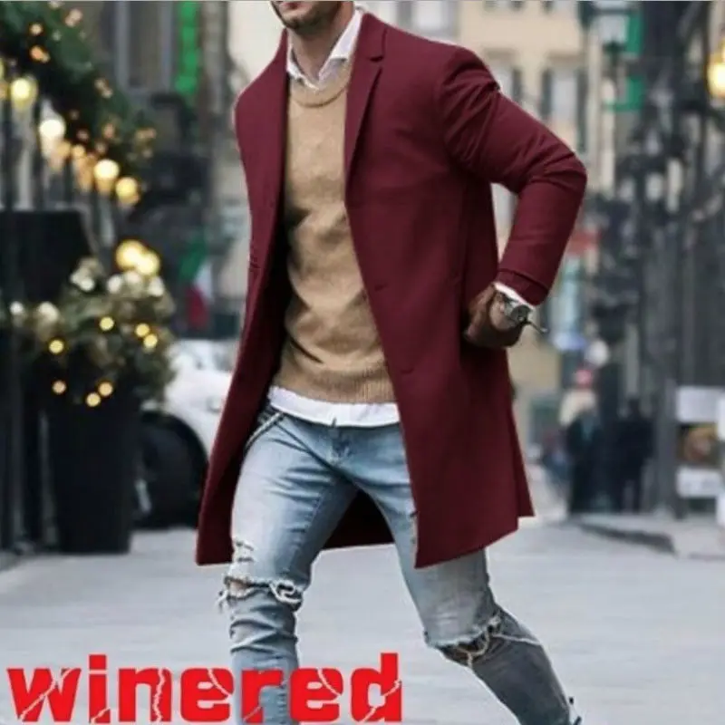 Новое поступление, повседневные Зимние Модные Мужские приталенные кардиганы с длинным рукавом, пальто, куртка, костюм, однотонные мужские длинные шерстяные пальто