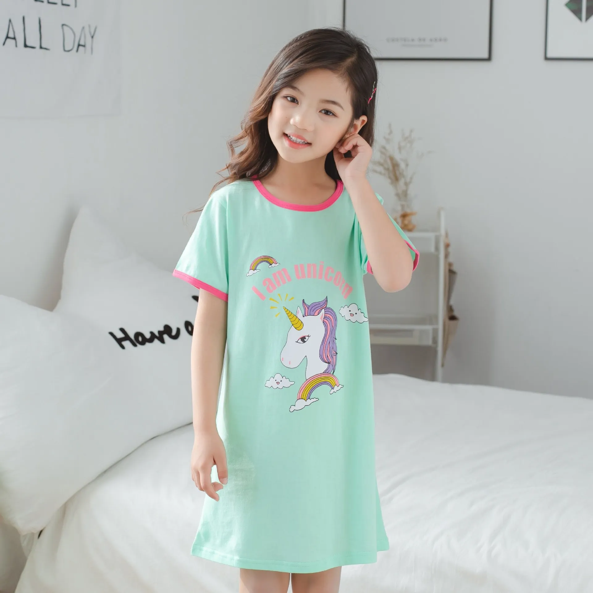 Летняя хлопковая ночная рубашка для девочек ночная рубашка с единор...