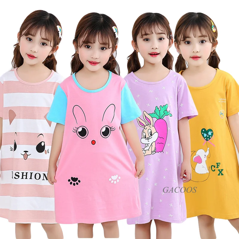 Летняя ночная рубашка для девочек, детские пижамы, хлопковые ночные...