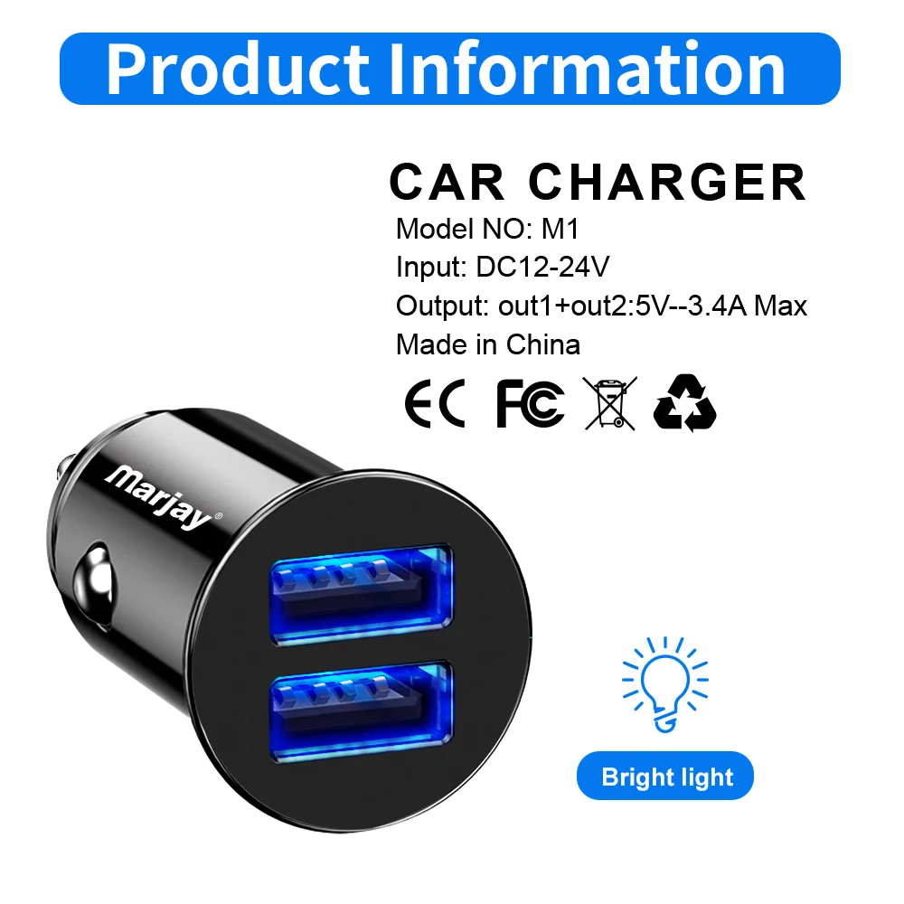 Автомобильное зарядное устройство Marjay с двумя USB-разъемами, 3,4 А, для Xiaomi mi9, Samsung S9, iPhone x, 7, планшетов, GPS