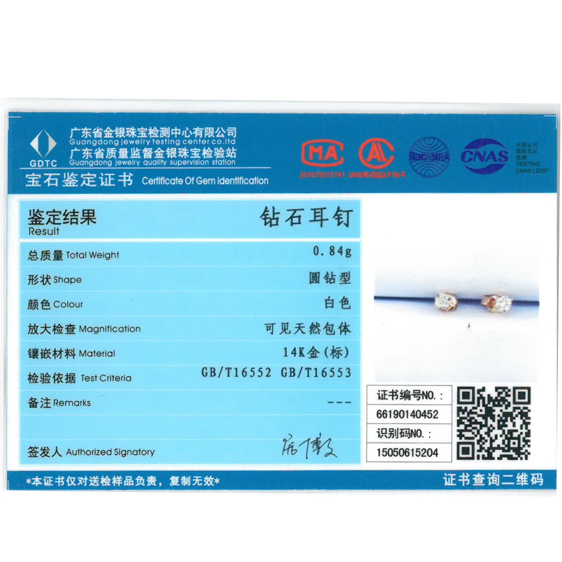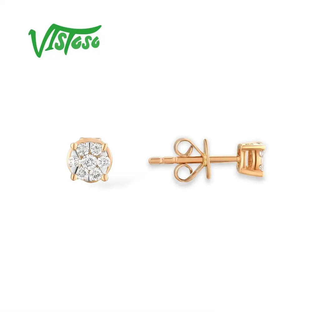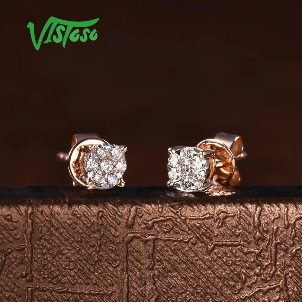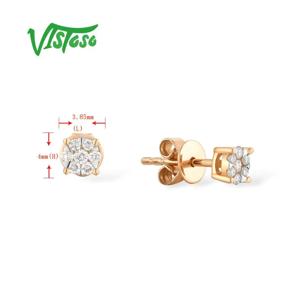 Женские золотые серьги-гвоздики VISTOSO из розового золота 14 к 585 пробы со сверкающими бриллиантами