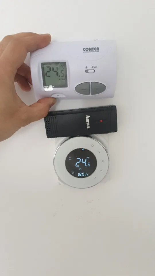 Хорошее качество. Легко подключить. Вход для внешнего датчика. В моем случае я использую его только для нагрева комнаты отправки с внешним датчиком. Потому что термостат находится в следующей комнате. Вы можете включить Дистанционное нагревание, прежде чем вы вернетесь домой. Я проверил внутренний датчик и он хорошо измеряет, вы можете даже изменить класс этого в случае, если он находится далеко или выше одного из радиаторов, и вы даете неправильные показания. Если вы не собираетесь класть электроклапаны, это хороший выбор