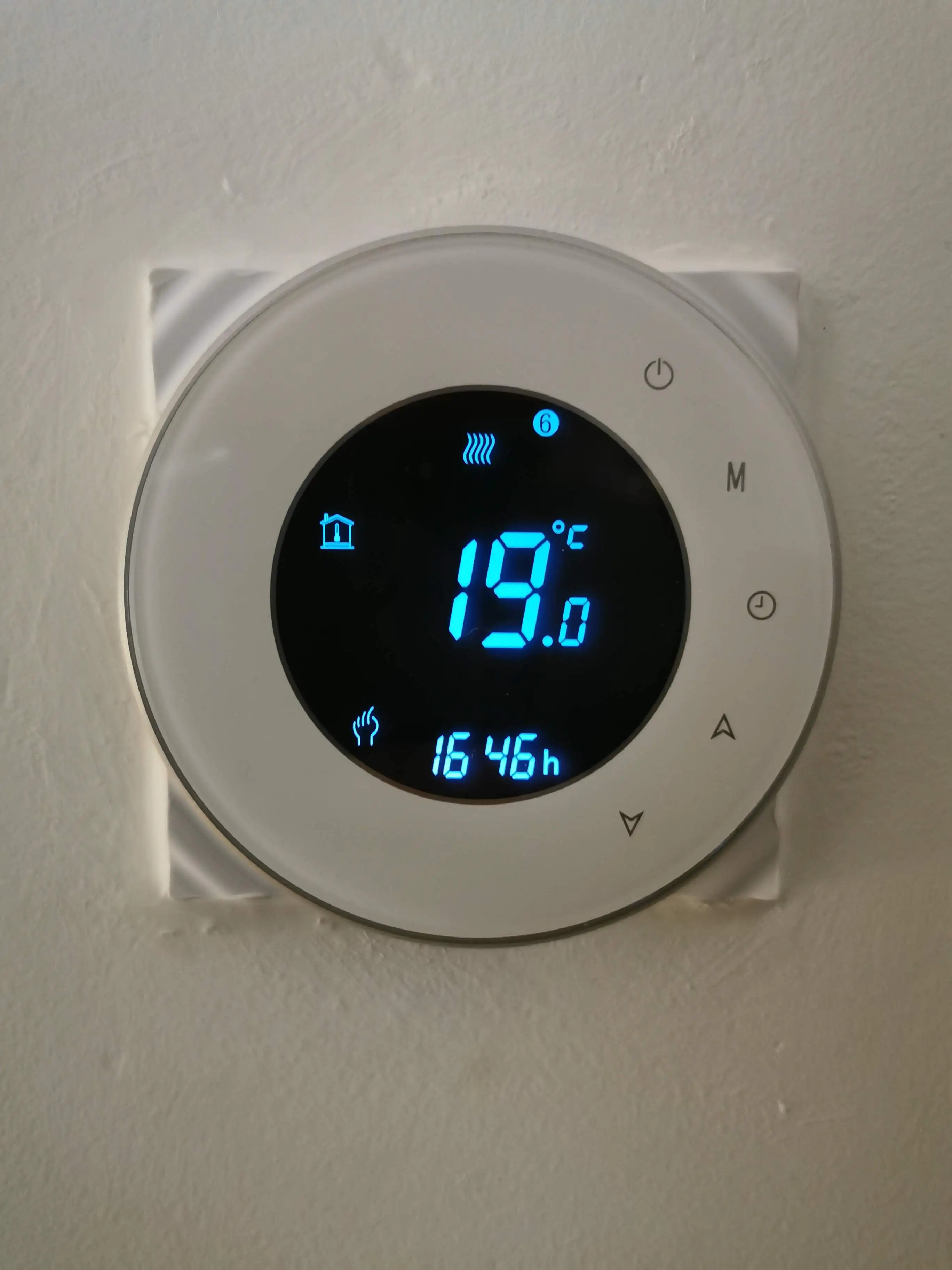 терморегулятор хороший, работает неплохо, выглядит хорошо, но есть нюансы. Точность пол градуса - хороший плюс в итоге колебания могут быть в пределах одного градуса, что менее ощутимо. 1) постоянно светит, в спальню ставить не вариант, особенно если любите спать в темноте. 2) при выключении питание на нормально открытом контакте остаётся, неудобно использовать нормально открытые клапана. например при отключении терморегулятора на летний период, питание на клапан все равно будет подаваться. 3) настройки есть, но все делаются не через приложение, а кнопками на самом терморегуляторе, что без инструкции не сделать.