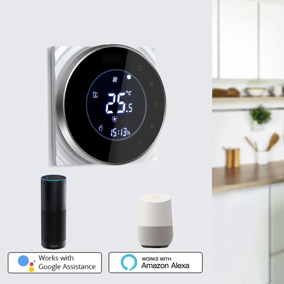 Умный Wi-Fi Сенсорный Термостат, беспроводной контроллер температуры для водыэлектрического теплого полагазового котла, работает с Google Home