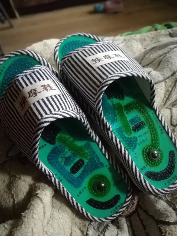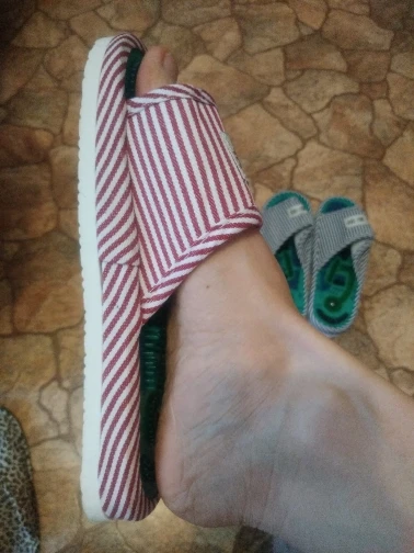 хорошие тапочки)) правда не уверенна в. действии массажа. Так как из за большого выреза спереди, нога сьезжает, и все массажные точки не на своих местах