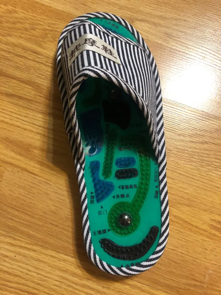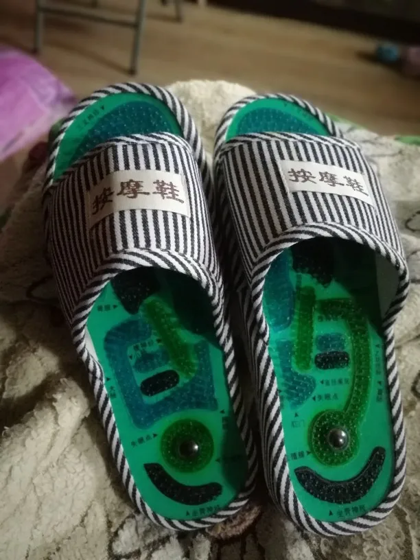 Отличные тапки! Заказываю у этого продавца впервые. Первые покупала в самом Китае. У меня проблемы с позвоночником. Постоянно болела спина. Благодаря таким тапкам(ношу дома каждый/весь день) забыла о боли! Те, которые купила в Китае, уже износили совсем. Эти, имеют неприятный запах, но он должен быстро выветриться. Взяла два размера(одни в подарок). Однозначно рекомендую! Для профилактики:)