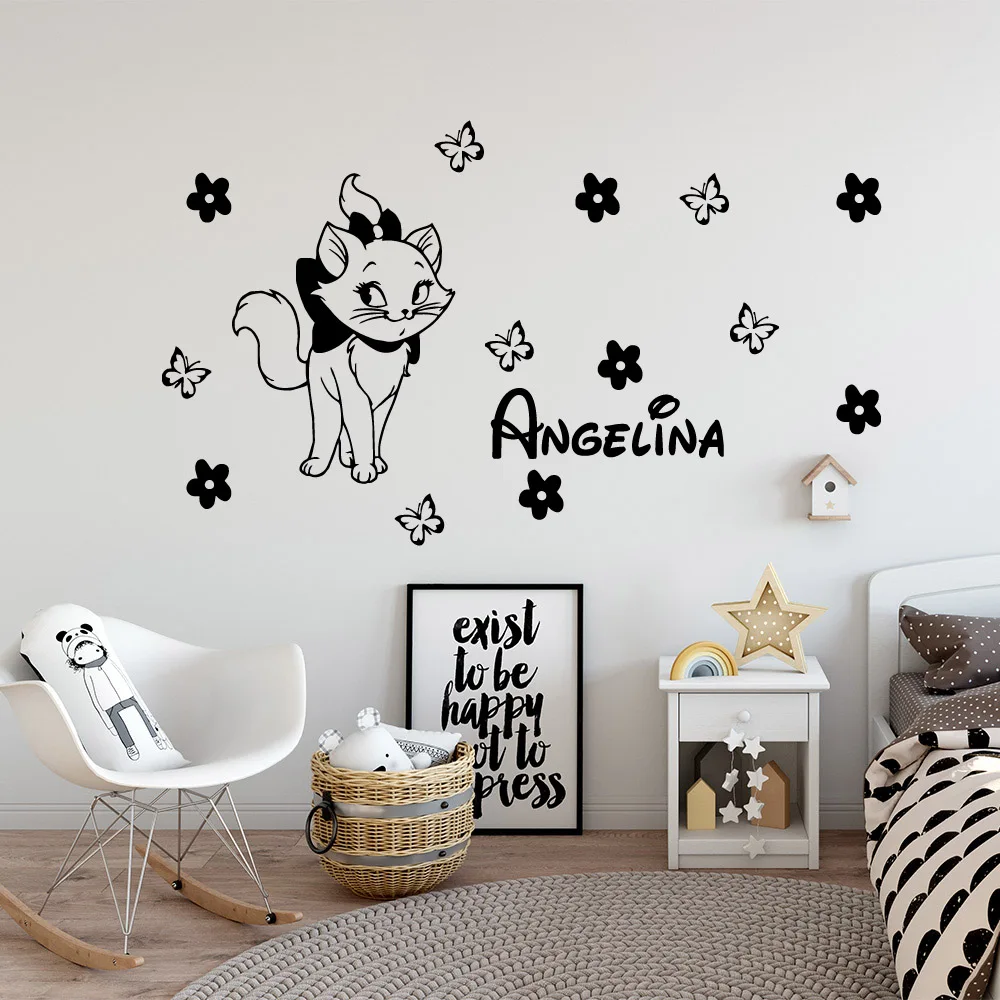 Виниловые наклейки на стену с милым котом, с именем на заказ, для детской комнаты, спальни, домашний декоративный декор, самоклеящиеся обои, наклейки для гостиной