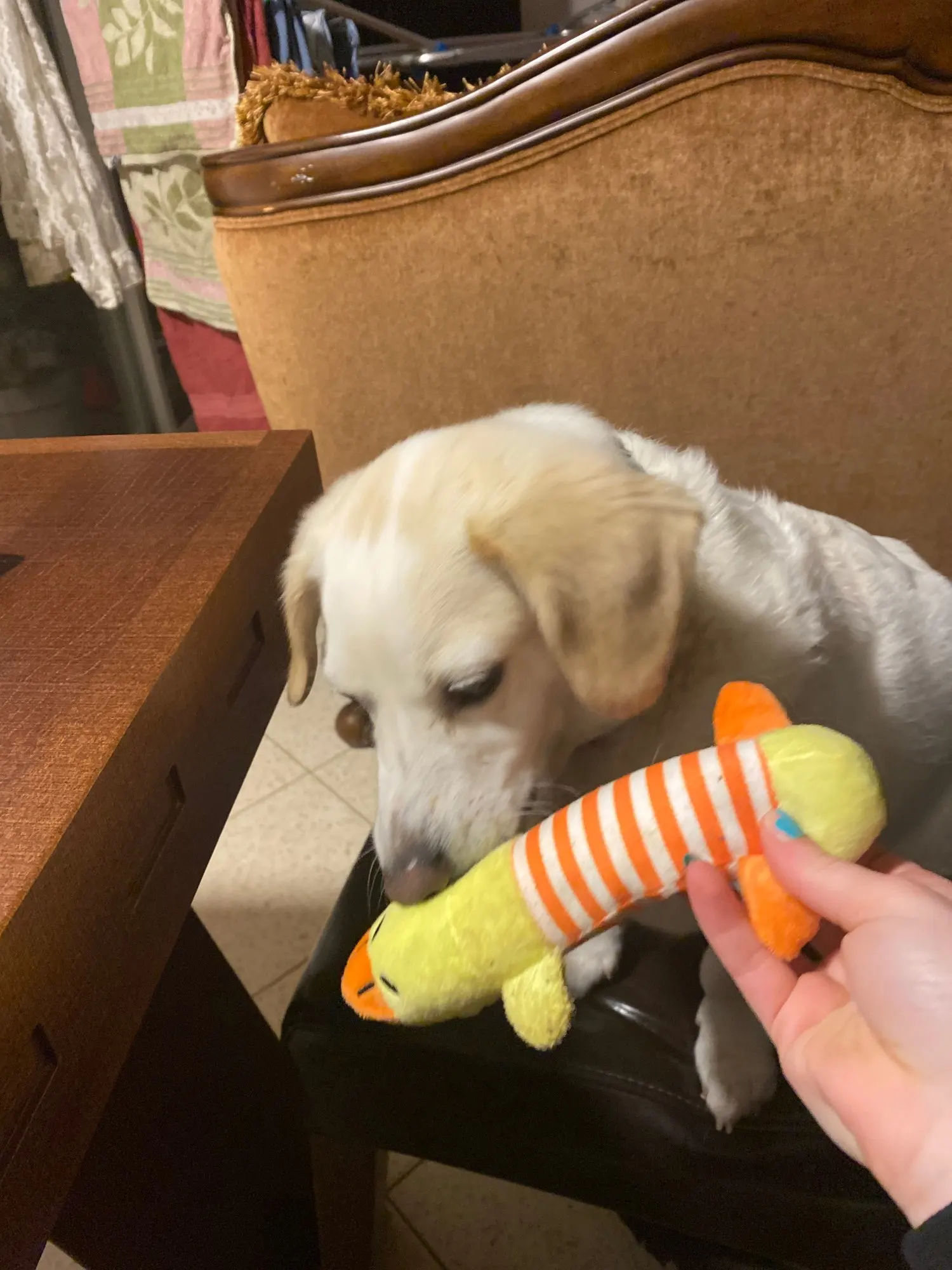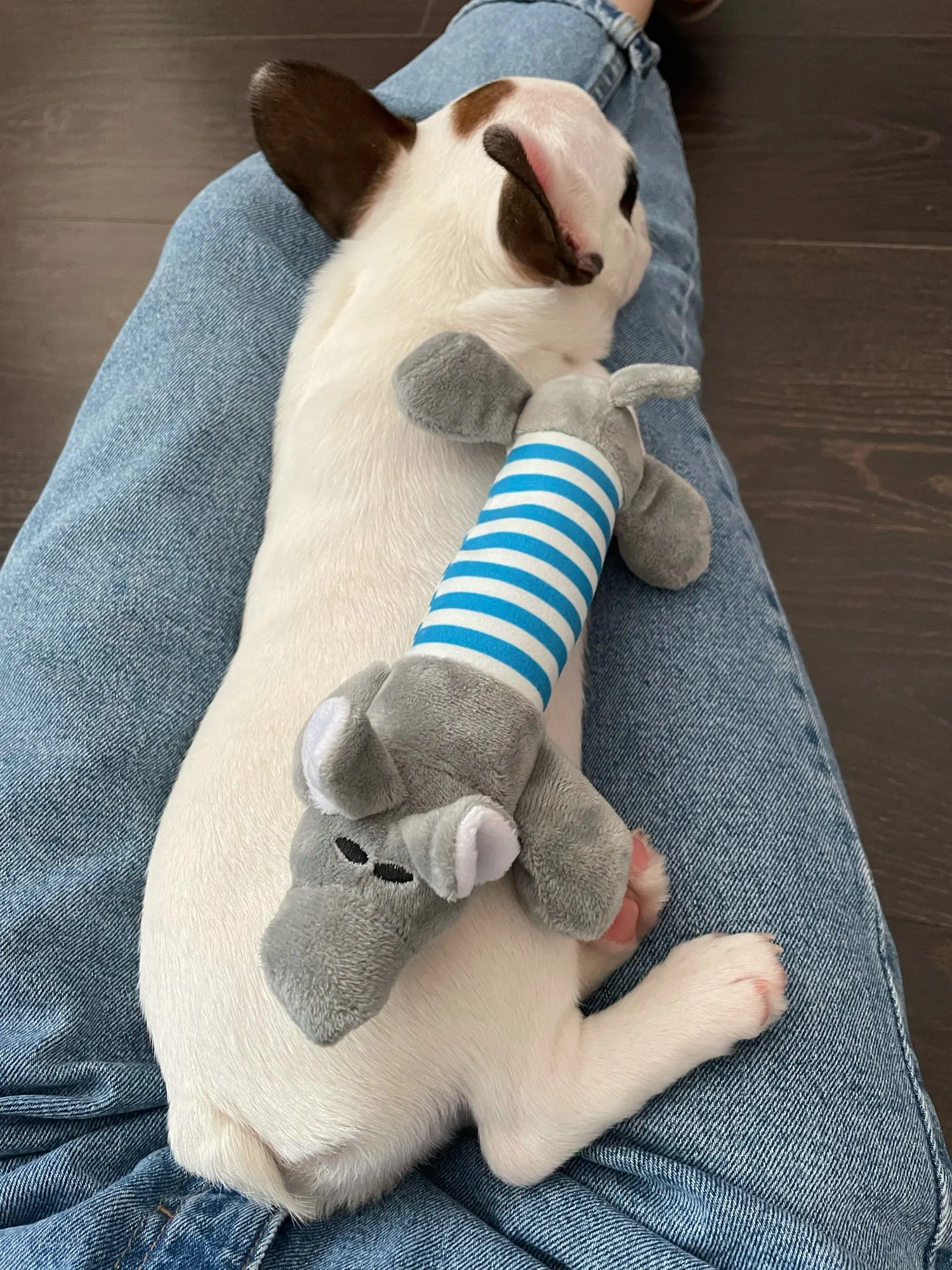 Игрушка пищит , пёс в восторге .Покупаю уже четвертую из этой серии .Очень советую эту продукцию .