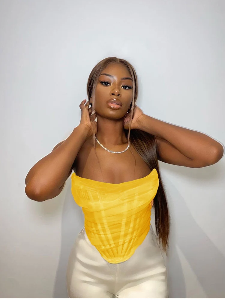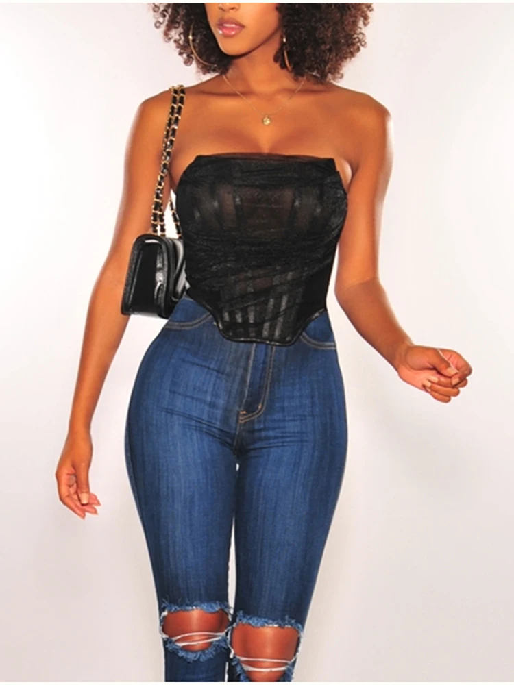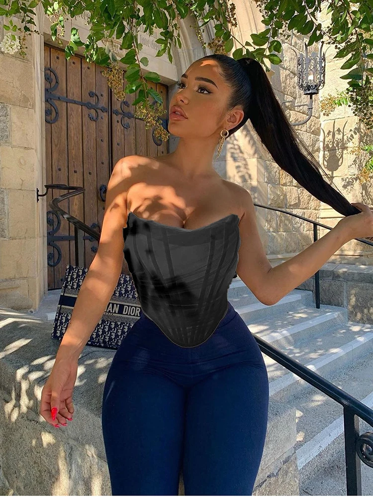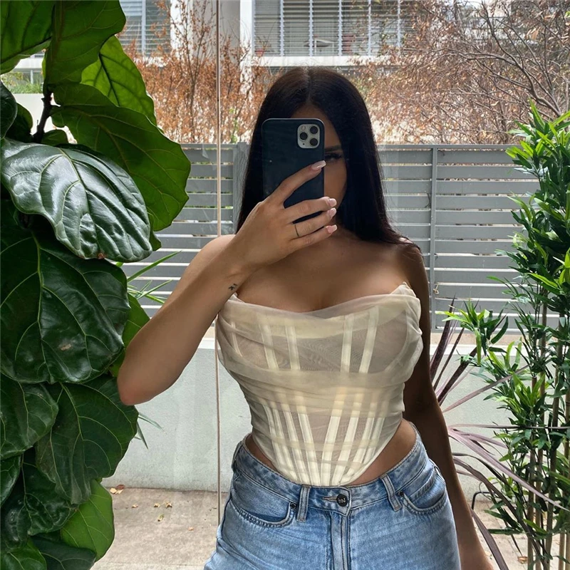 Женский сетчатый корсет NewAsia, Топ без бретелек, бюстье, прозрачный топ с открытыми плечами, майка Топы с рюшами