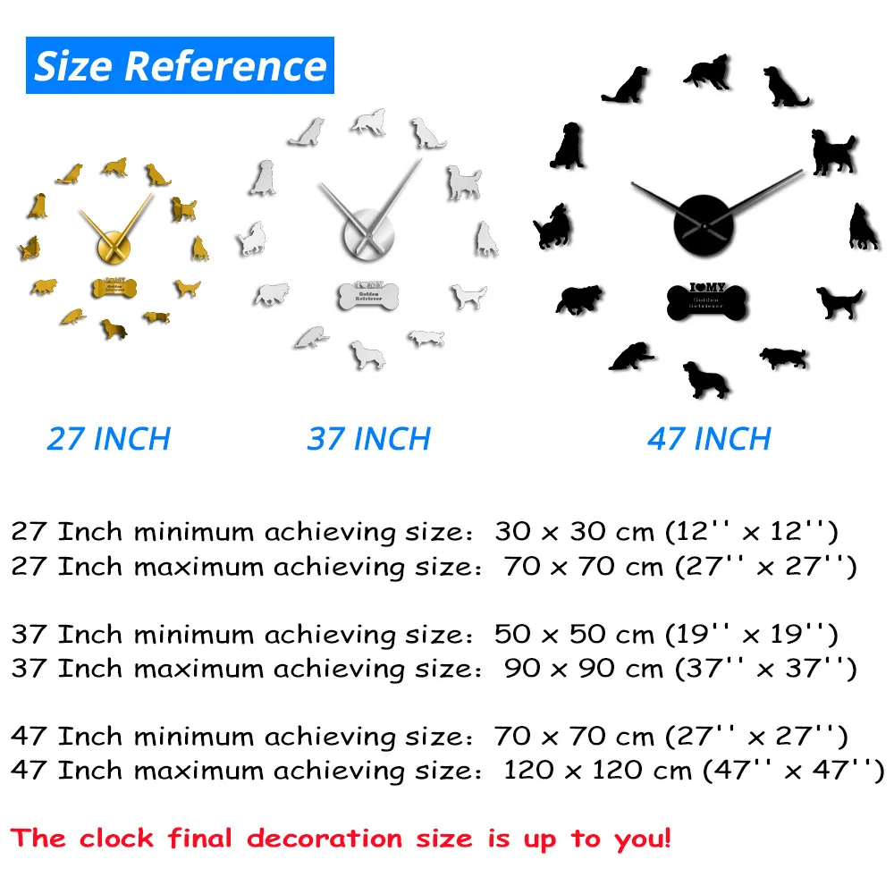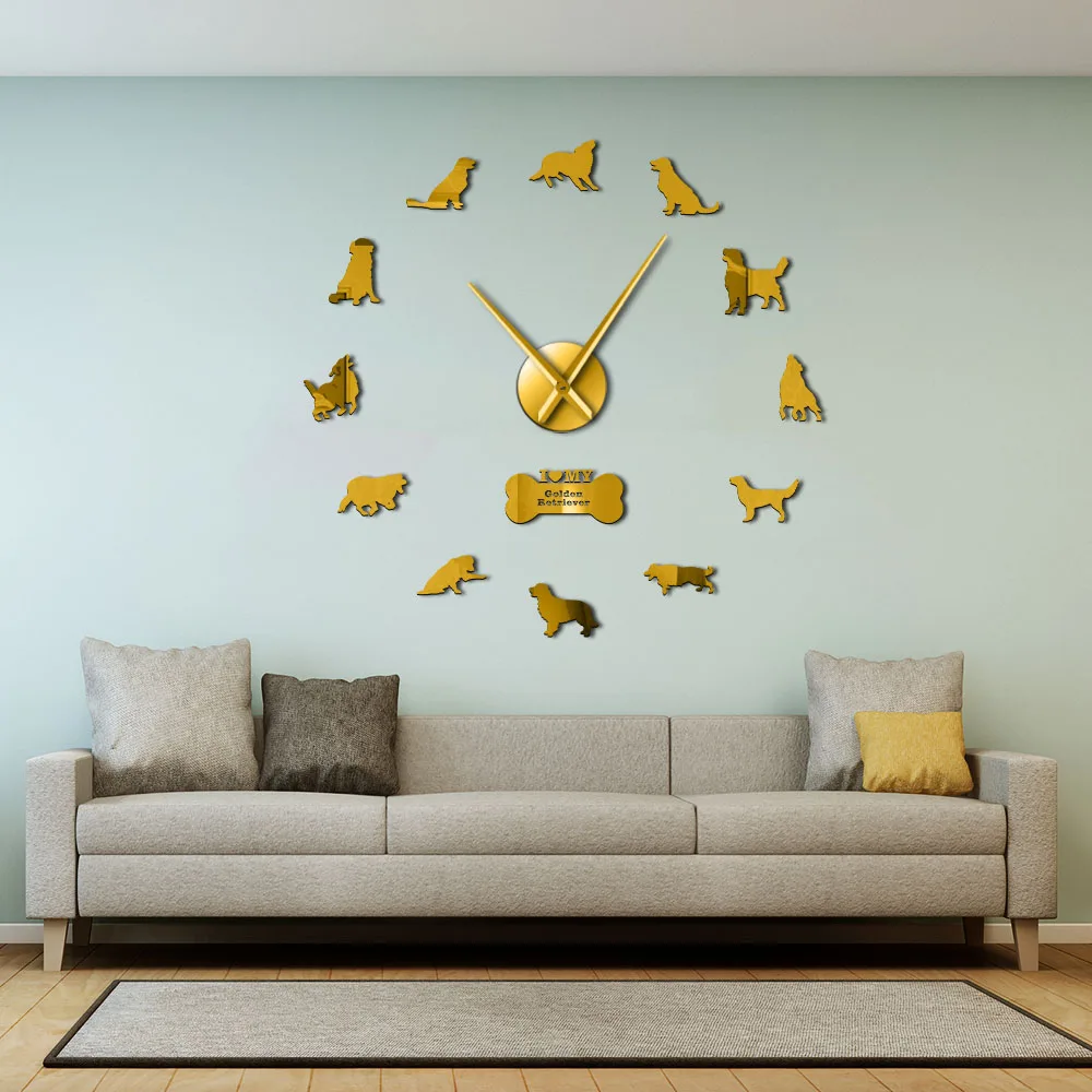 Золотые ретривер настенные часы собака животное зеркало настенные наклейки DIY гигантские настенные часы ретривер собака работа животное бескаркасные настенные часы