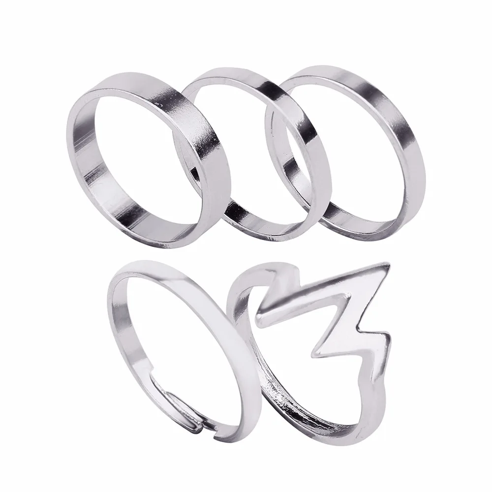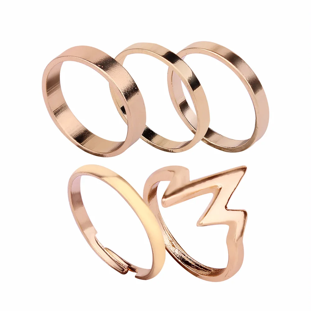 Новое ювелирное изделие, модное женское кольцо Lightning Ecg, набор из сплава, гладкое простое отверстие, можно регулировать кольцо, золото и серебро, 5 комплектов