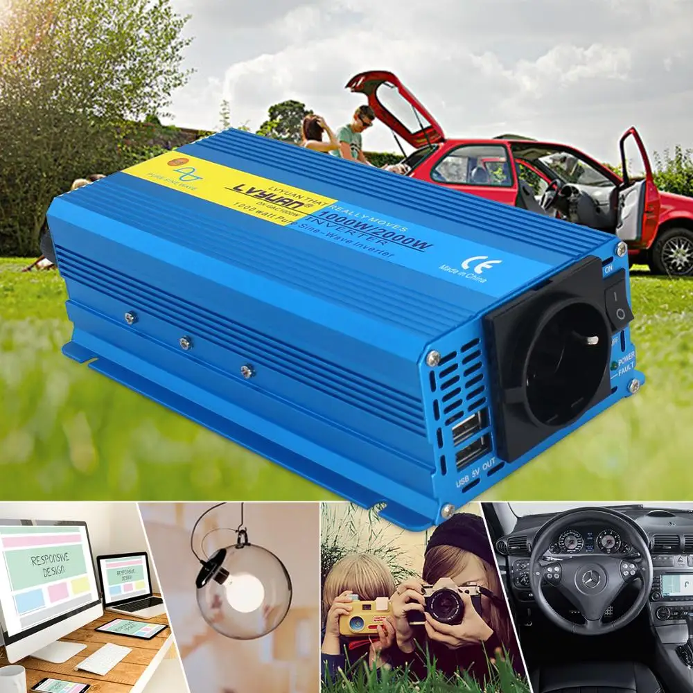 Инвертор немодулированного синусоидального сигнала, инвертор с двойным usb 12 В DC В AC 2000 в 220 В, автомобильный инвертор для кемпинга, 230 А, 2 USB, вилка ЕС, конвертер лодки Вт