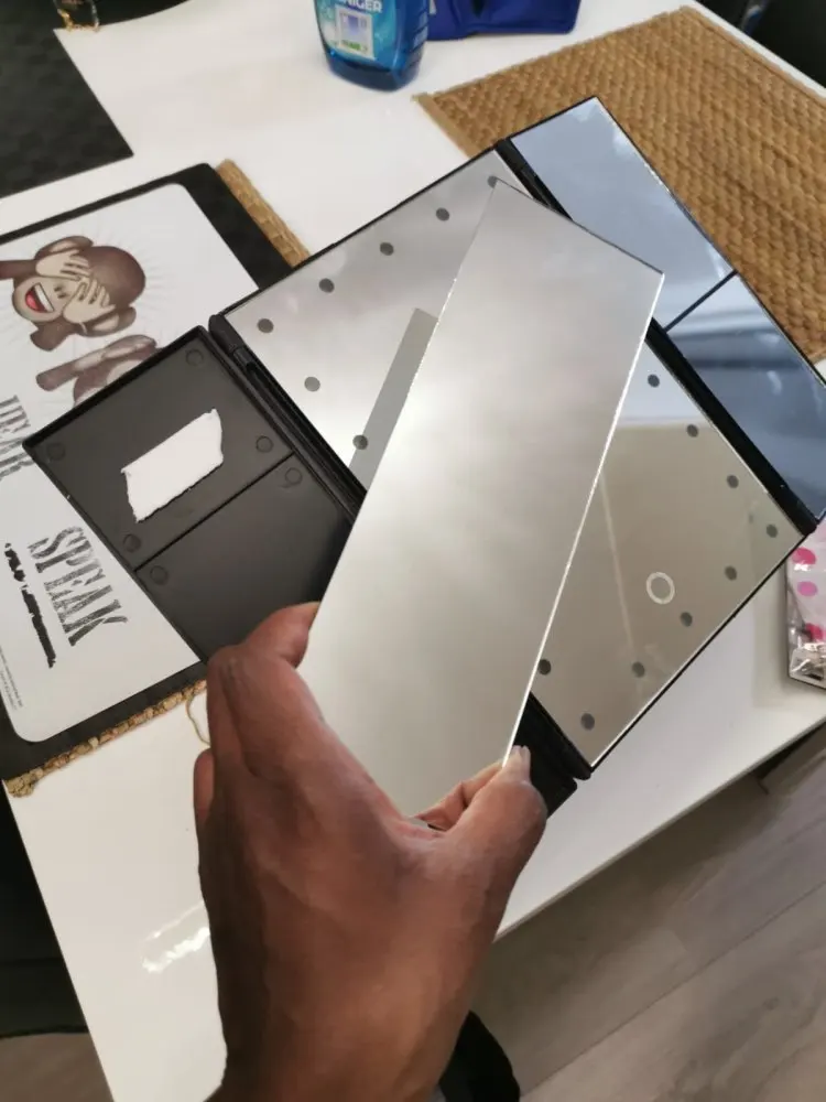 Зеркало полностью соответствует описанию. Я вижу это больше для девочек или подростков, чем для взрослых. Я купил три и в некоторых областях он немного грязный или с клеем, и дверь не закрывает идеально, материал основной пластик, поэтому я дам вам четыре звезды вместо пяти. Он пришел быстро.