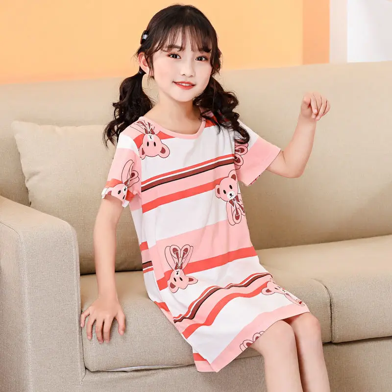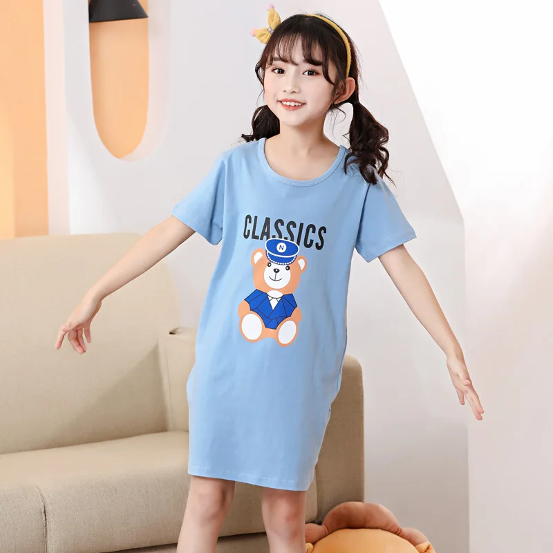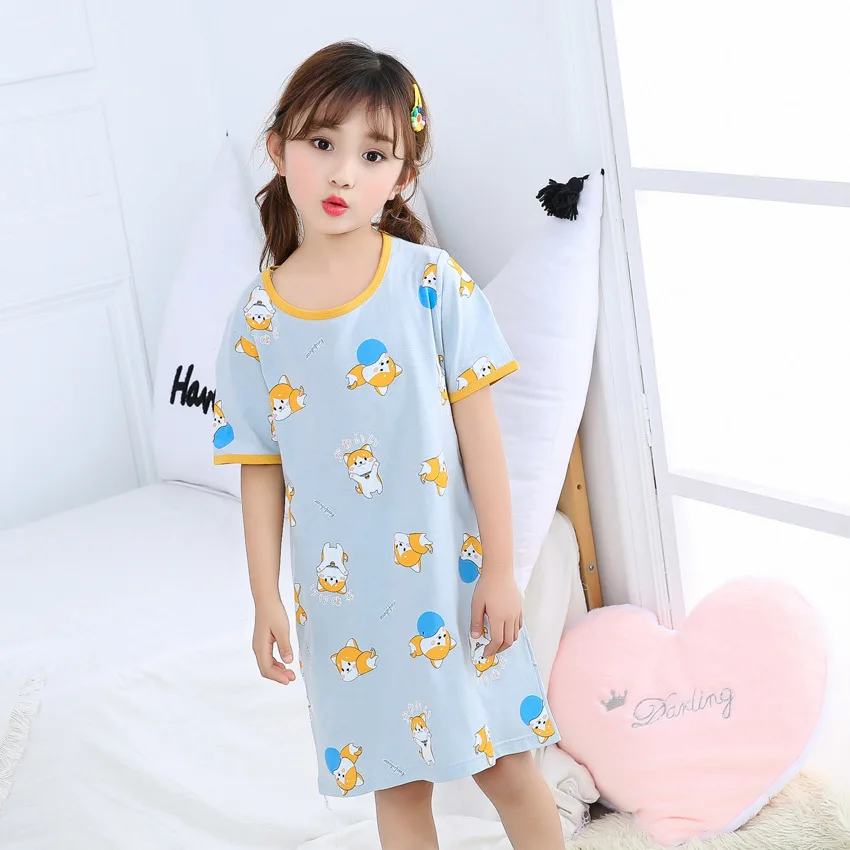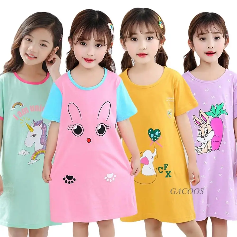 Детская ночная рубашка для девочек, 100% хлопок, с коротким рукавом