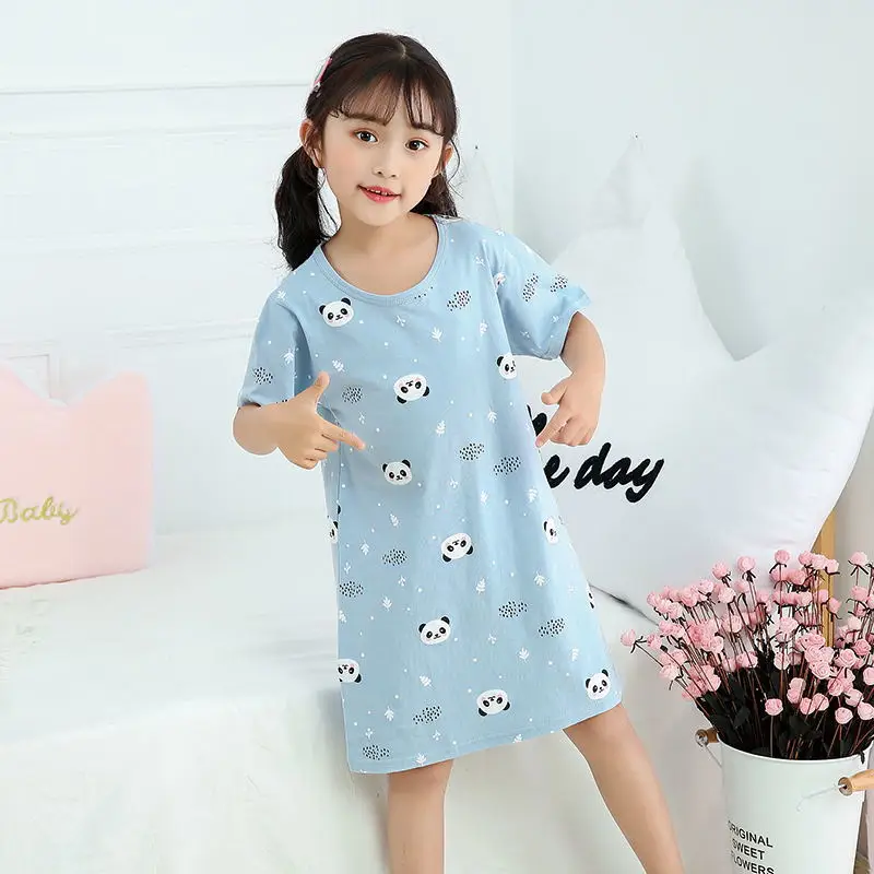 Летняя детская одежда для сна, халат, детское Хлопковое платье с ко...
