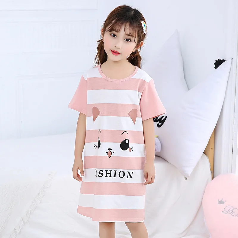 2021 Пижама с коротким рукавом для девочек, хлопковые ночные рубашк...