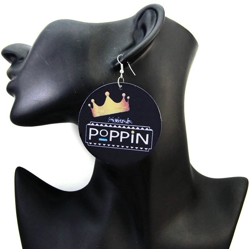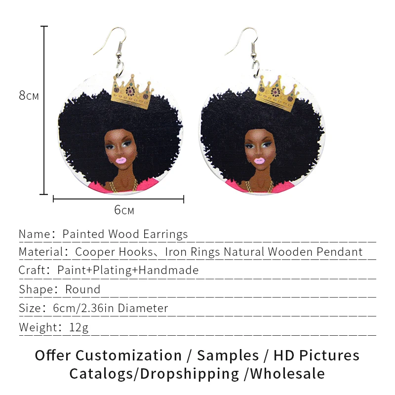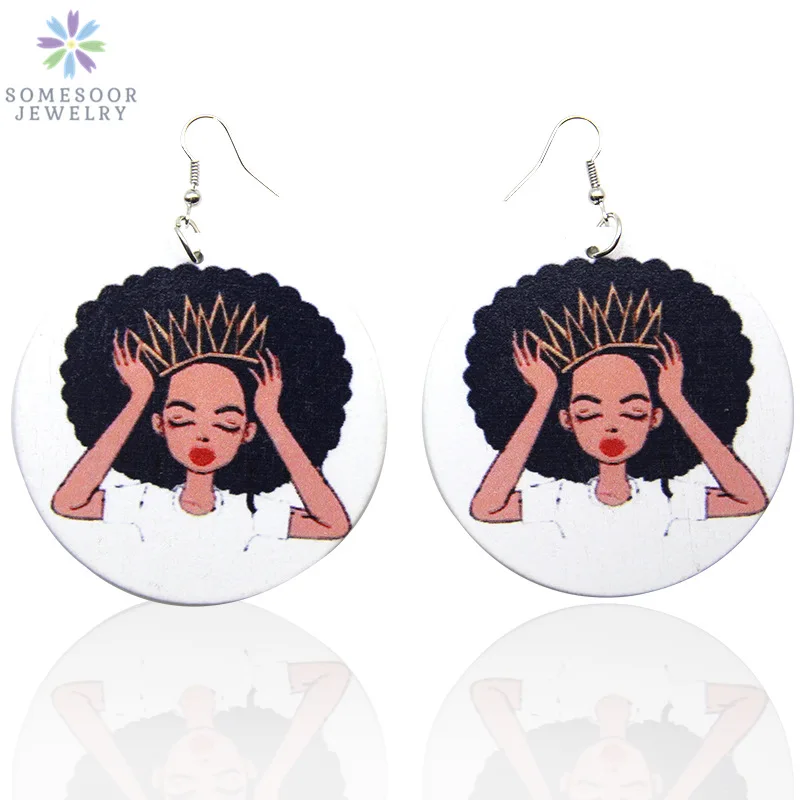 SOMESOOR оптовая продажа с принтом сильные черные женские деревянные серьги-подвески Афро Королева Корона поппин африканская подвеска ювелирные изделия для девушек