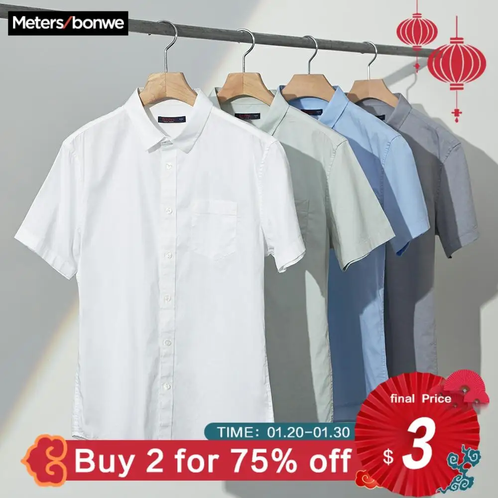 Мужская рубашка с коротким рукавом Metersbonwe, однотонная Однотонная рубашка в гонконгском стиле, рубашка из ткани Оксфорд, Новинка лета 2019