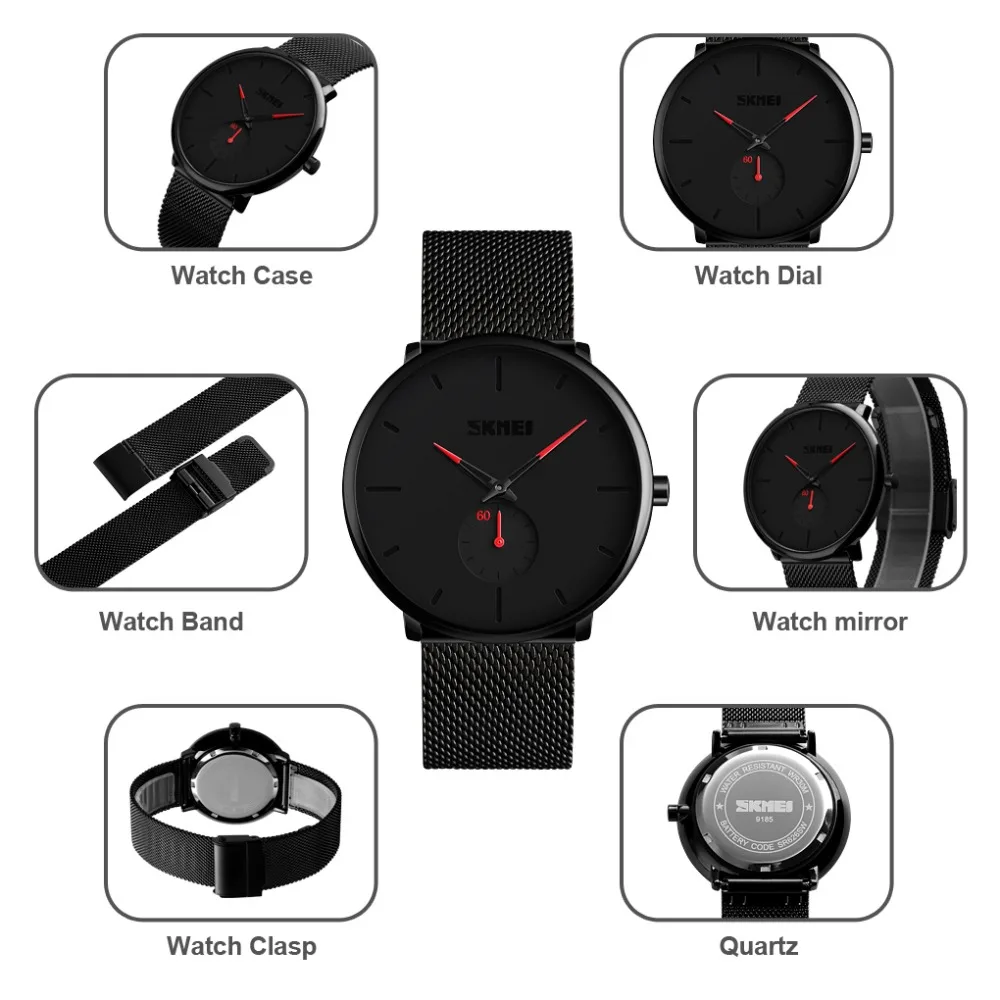 SKMEI повседневные мужские часы со стальным сетчатым ремешком, Роск...