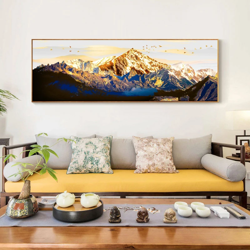 Абстрактная картина маслом с изображением золотых гор, плакаты и принты на холсте, настенные художественные картины для гостиной, Декор без рамки
