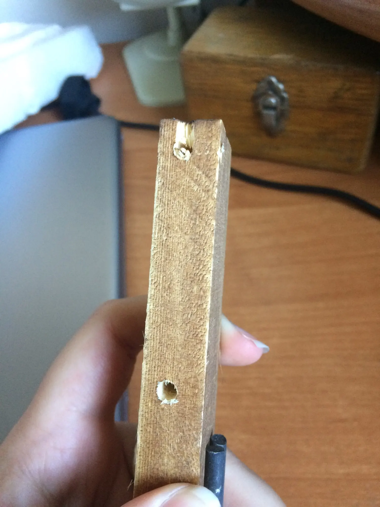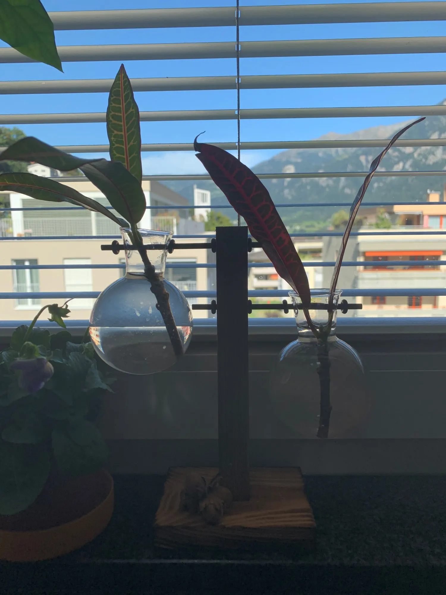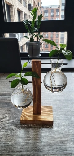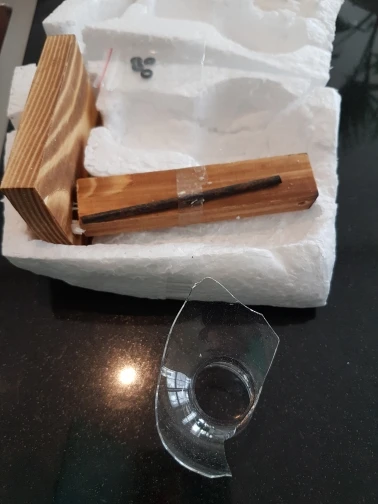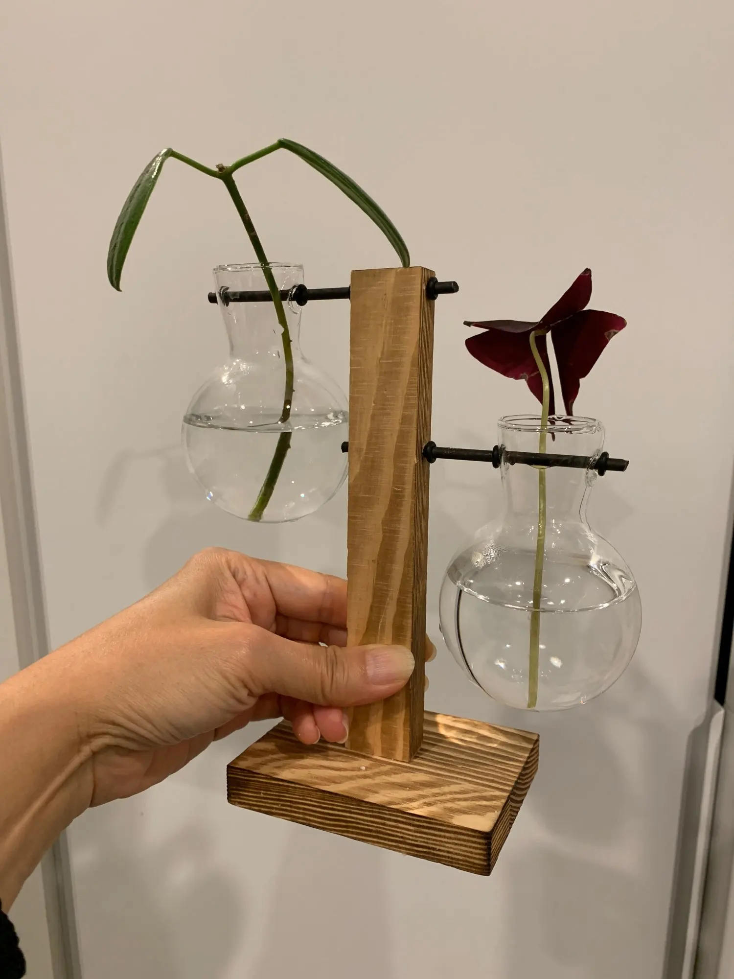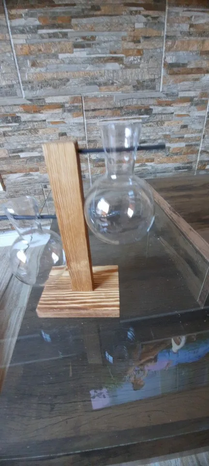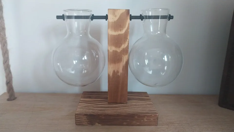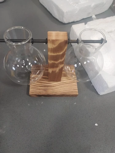 the metal stick that goes through the wood is so crocked that the glass vases are on a lean not straight at all.