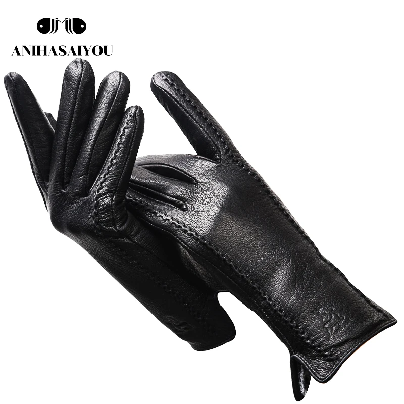 Женские перчатки из натуральной кожи с имитацией оленя, модные зимние перчатки из натуральной овчины, выдерживают холодную погоду-2269