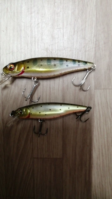 Неплохая копия Крэк Джека от Понтун 21, всплывающие - догружаю суспендотами до СП. Петли проклеить, крюки не меняю, ловлю так.
