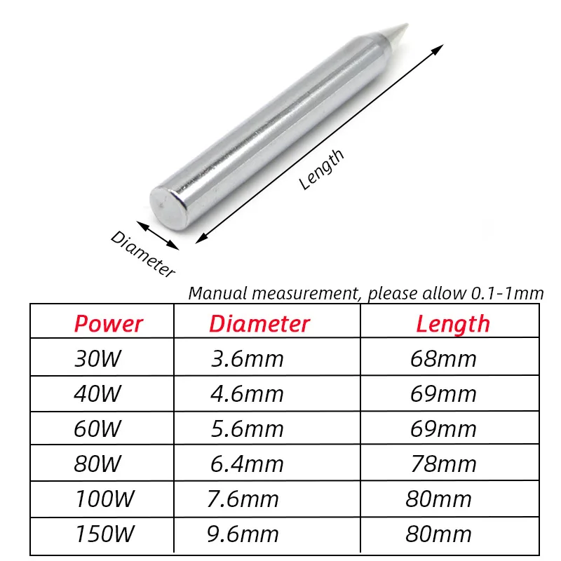 3 шт., сменный наконечник для паяльника, 30 Вт, 40 Вт, 60 Вт, 80 Вт, 100 Вт, 150 Вт