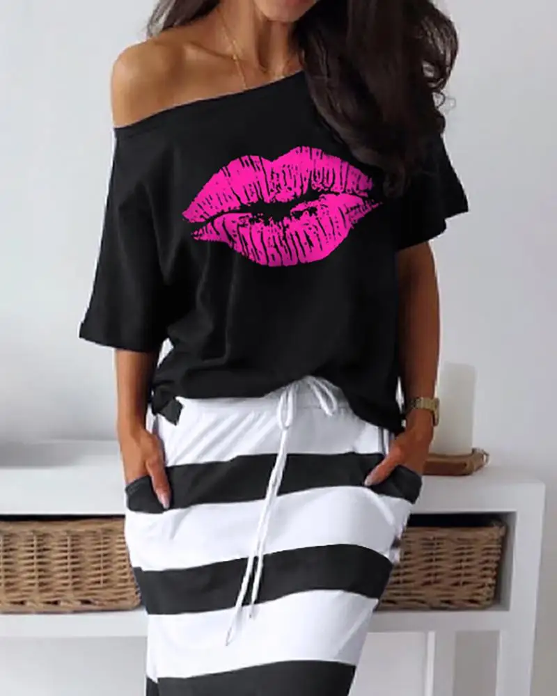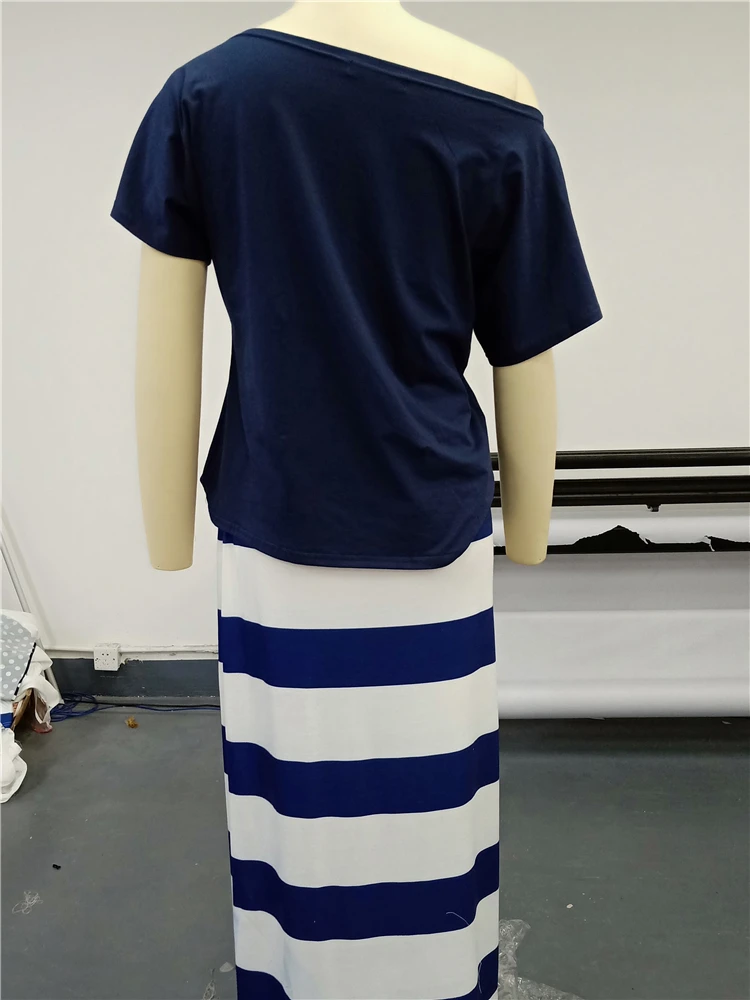 Летний элегантный костюм из двух предметов для отдыха на каникулах, комплект из футболки с принтом якоря и полосатой Макси-юбки, 2020