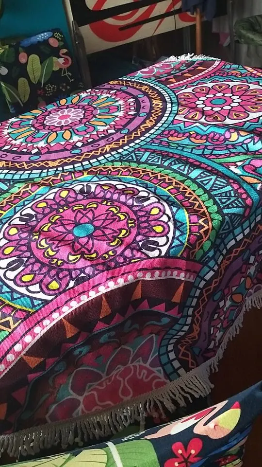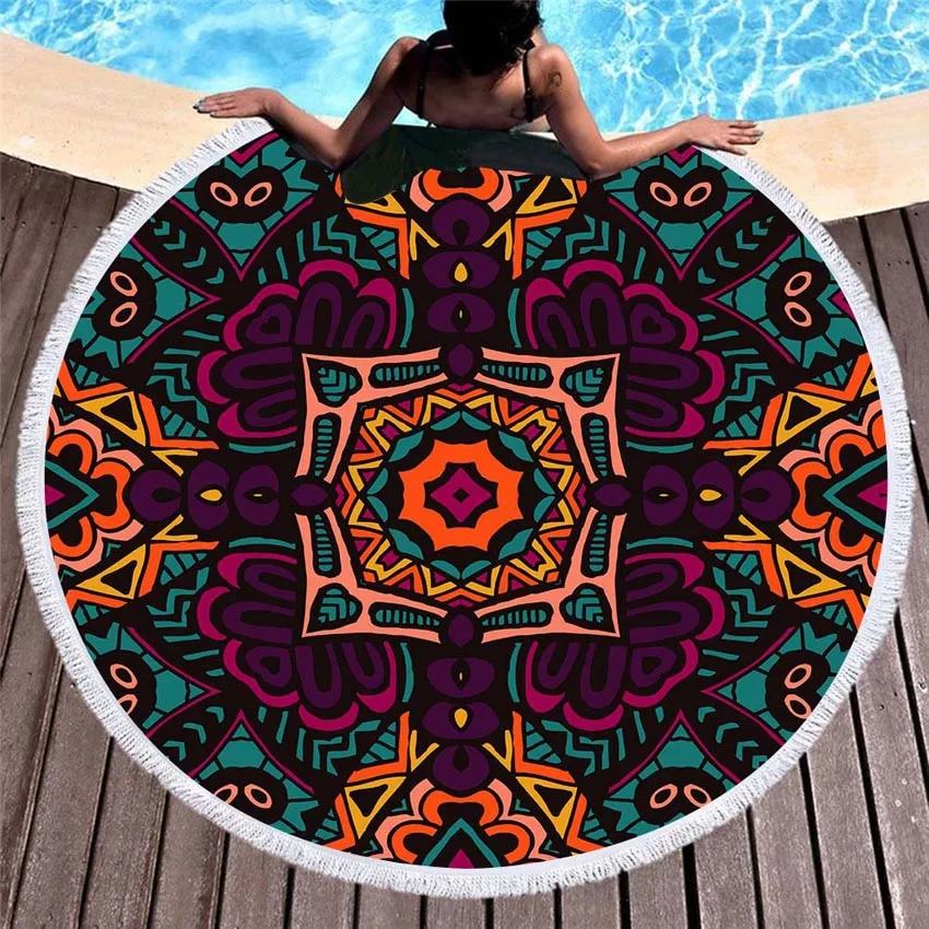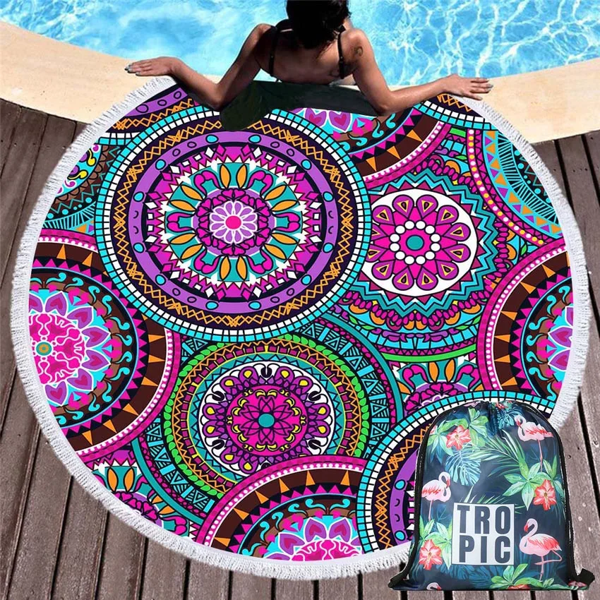 Летнее круглое пляжное полотенце с геометрическим рисунком мандалы, круглое банное полотенце для душа с сумкой для хранения на шнурке, коврик для йоги, одеяло