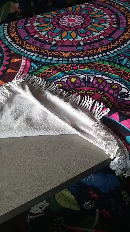 1. Размер полотенца: круглый 150x150 см2. Узор на полотенце: мандала, геометрический3. Ткань полотенца: микрофибра4. Вес полотенца: 450-500 г5. Ткань сумки: полиэстер6. Размер сумки: ширина 33 см, высота 41 см7. Вес упаковки: 50-60 г8 посылка: 1 пляжное полотенце или 1 сумка + 1 пляжное полотенце
