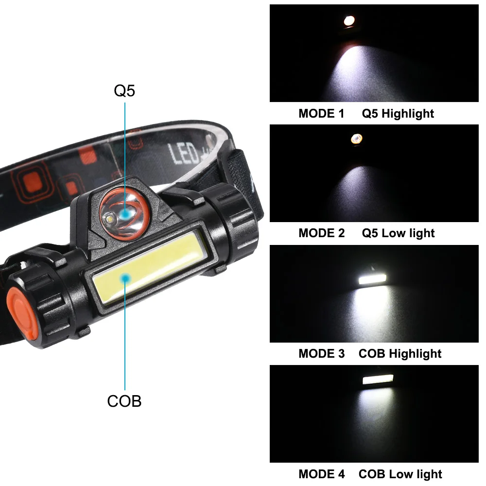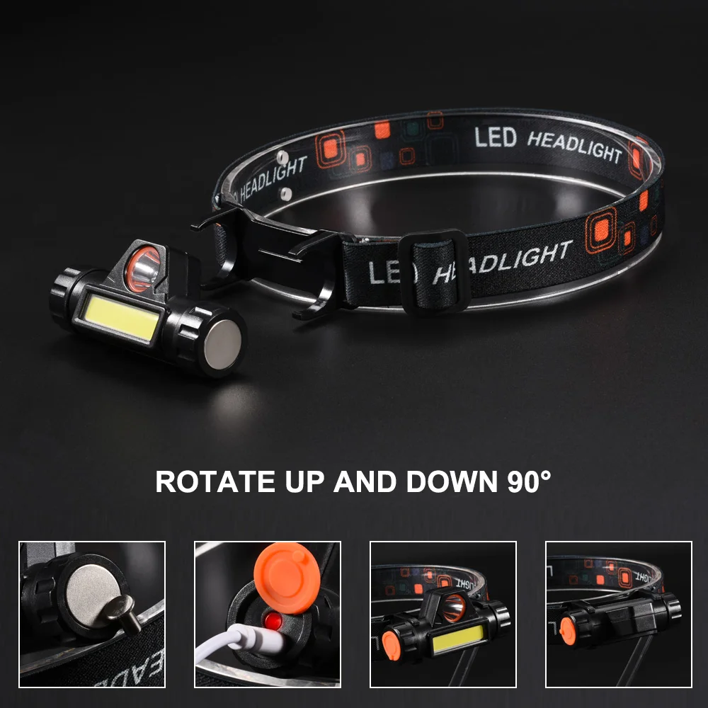 Лампа Налобная Светодиодная лампа с монолитным блоком светодиодов, usb, 2 режима