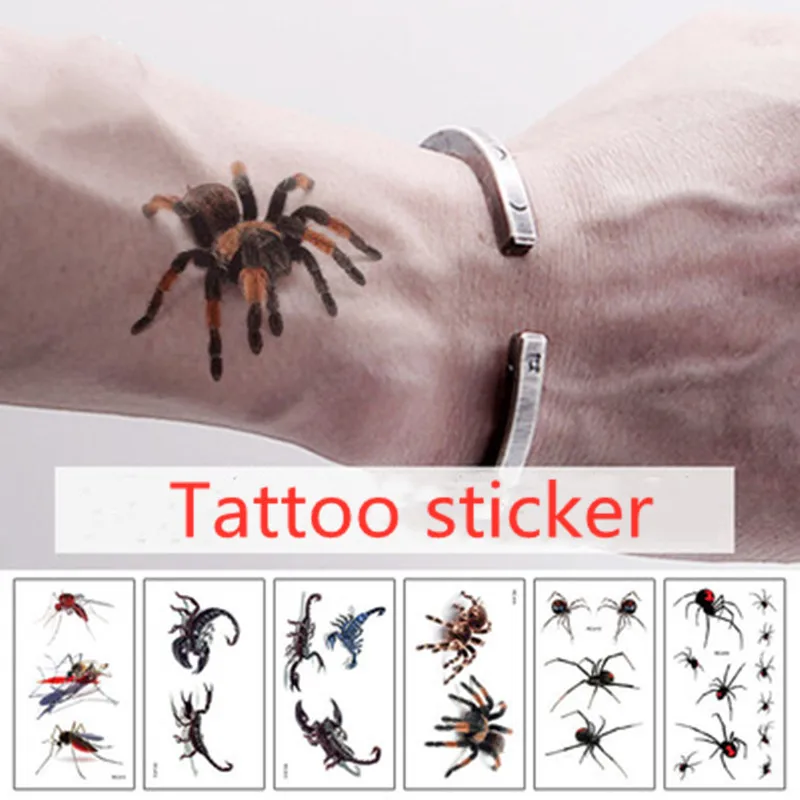 Горячие 3D Паук тату Скорпион временные татуировки наклейки для женщин и мужчин на Хэллоуин Поддельные татуировки боди-арт шутка