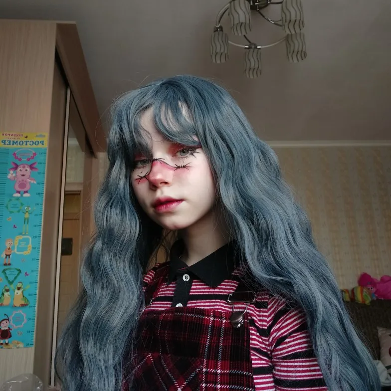 В то время как качество хорошее, изображение немного иллюзионное, парик не очень длинный, и челка не вырезана или не Стилизована каким-то образом.
