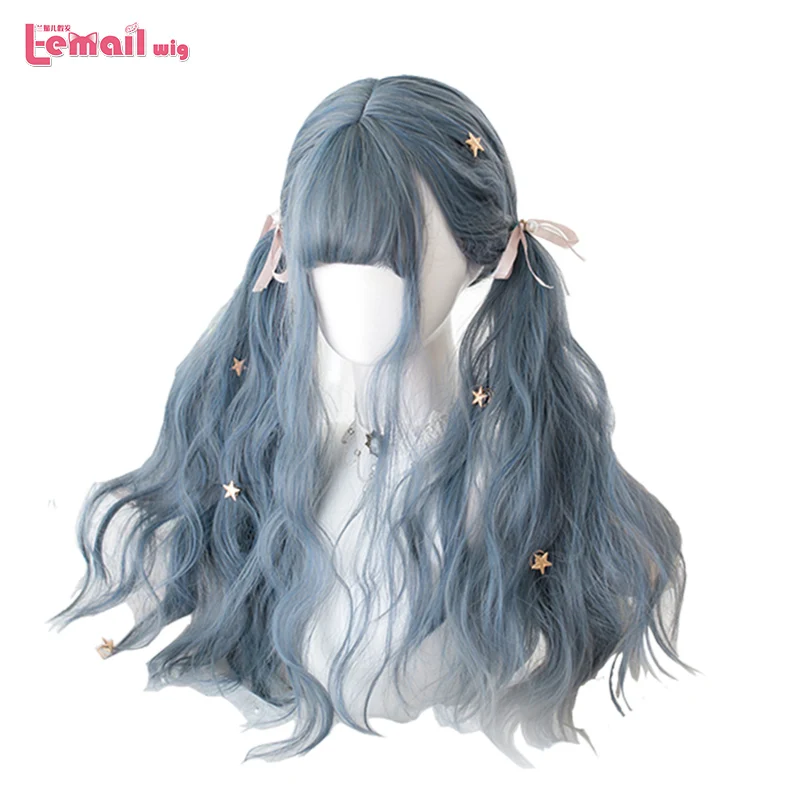 Парик L-email длинный синий смешанный серый парик Лолиты пыльно-синий волнистый парик для косплея Харадзюку термостойкие синтетические волосы для Хэллоуина