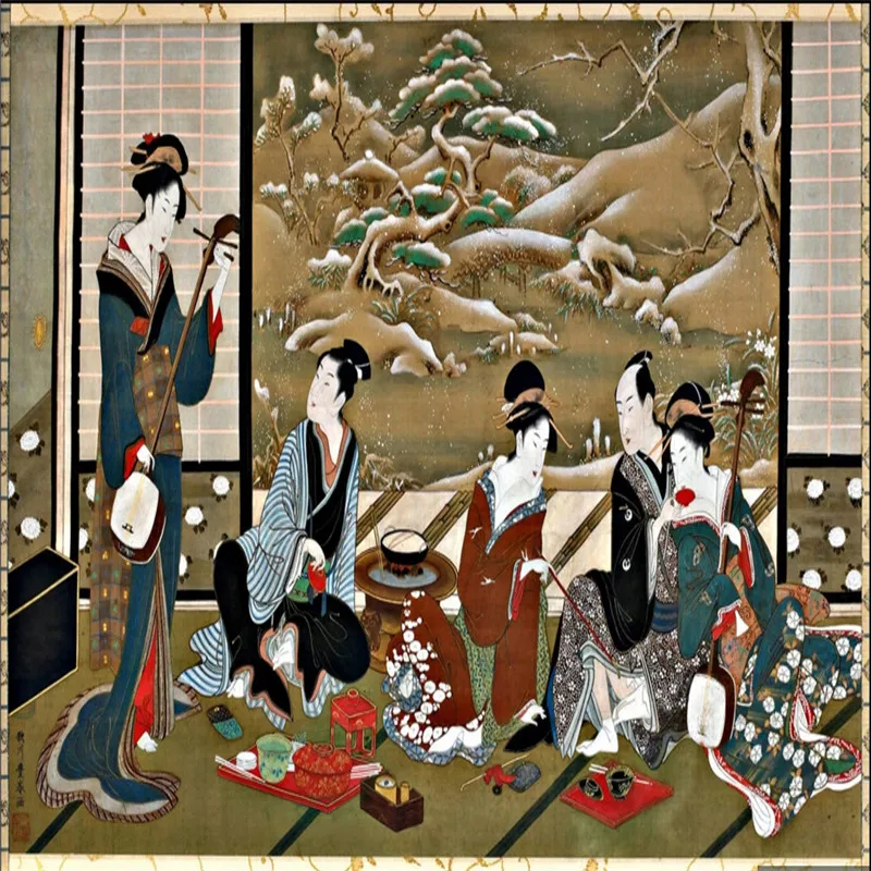 HD Ukiyo-e картина зимний клуб певцы промышленный Декор настенная бумага 3D суши японский ресторан фон настенная бумага 3D