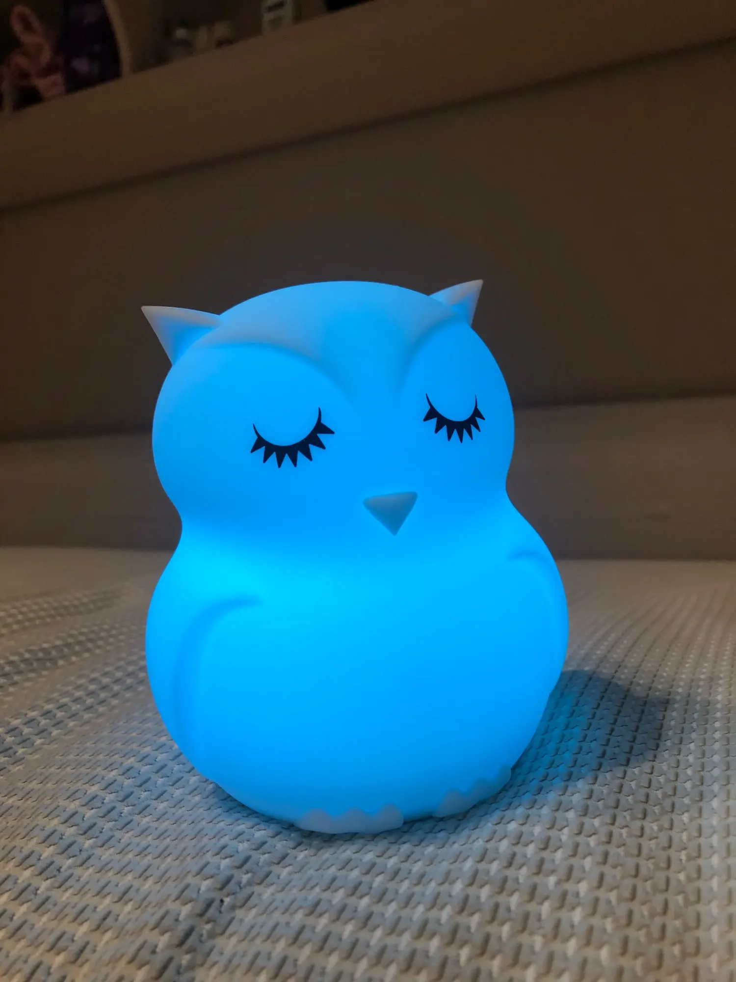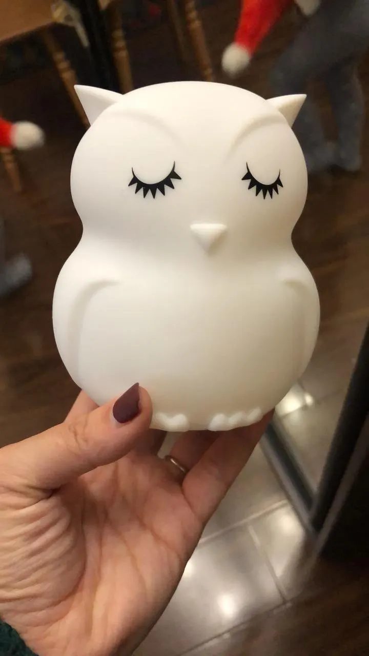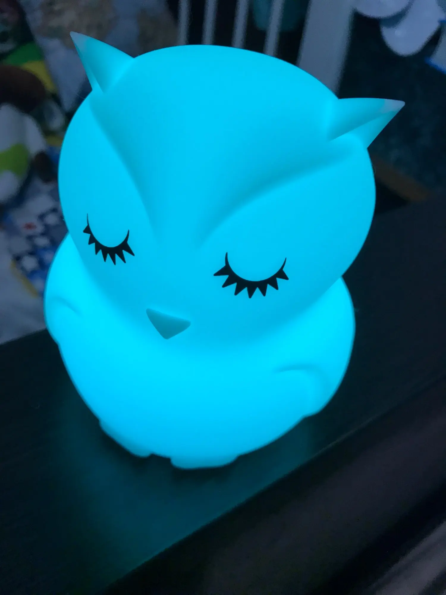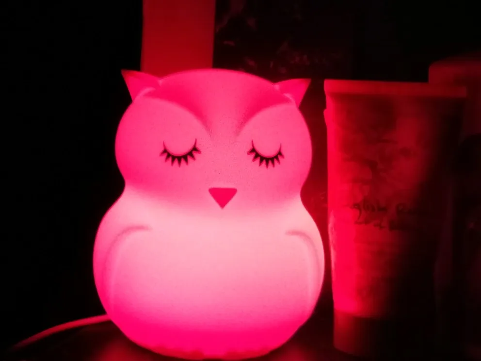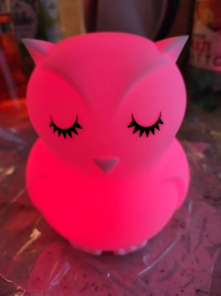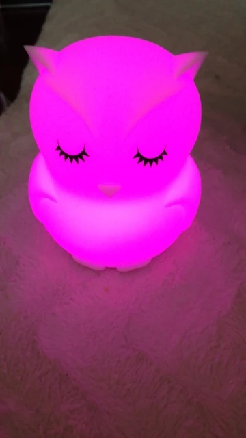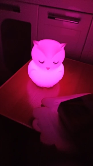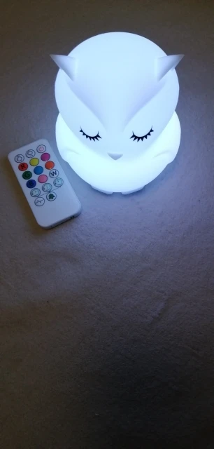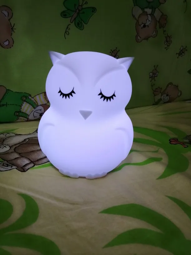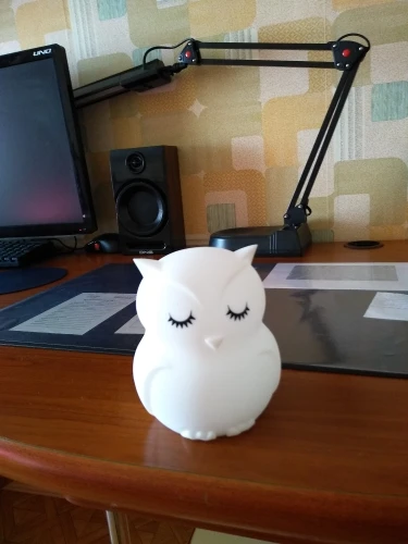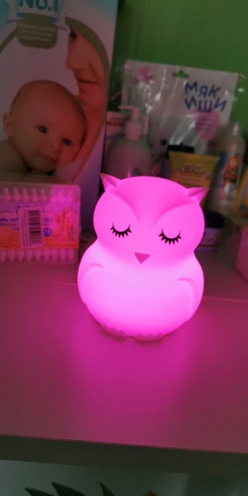 Очень милый и приятный ночник! На ощупь как мягкий бархат. Детально прорисованные черты всей совушки . Многофункциональная, что удобно! Регулировка яркости есть, выбор цвета есть. Прелесть! Спасибо огромное