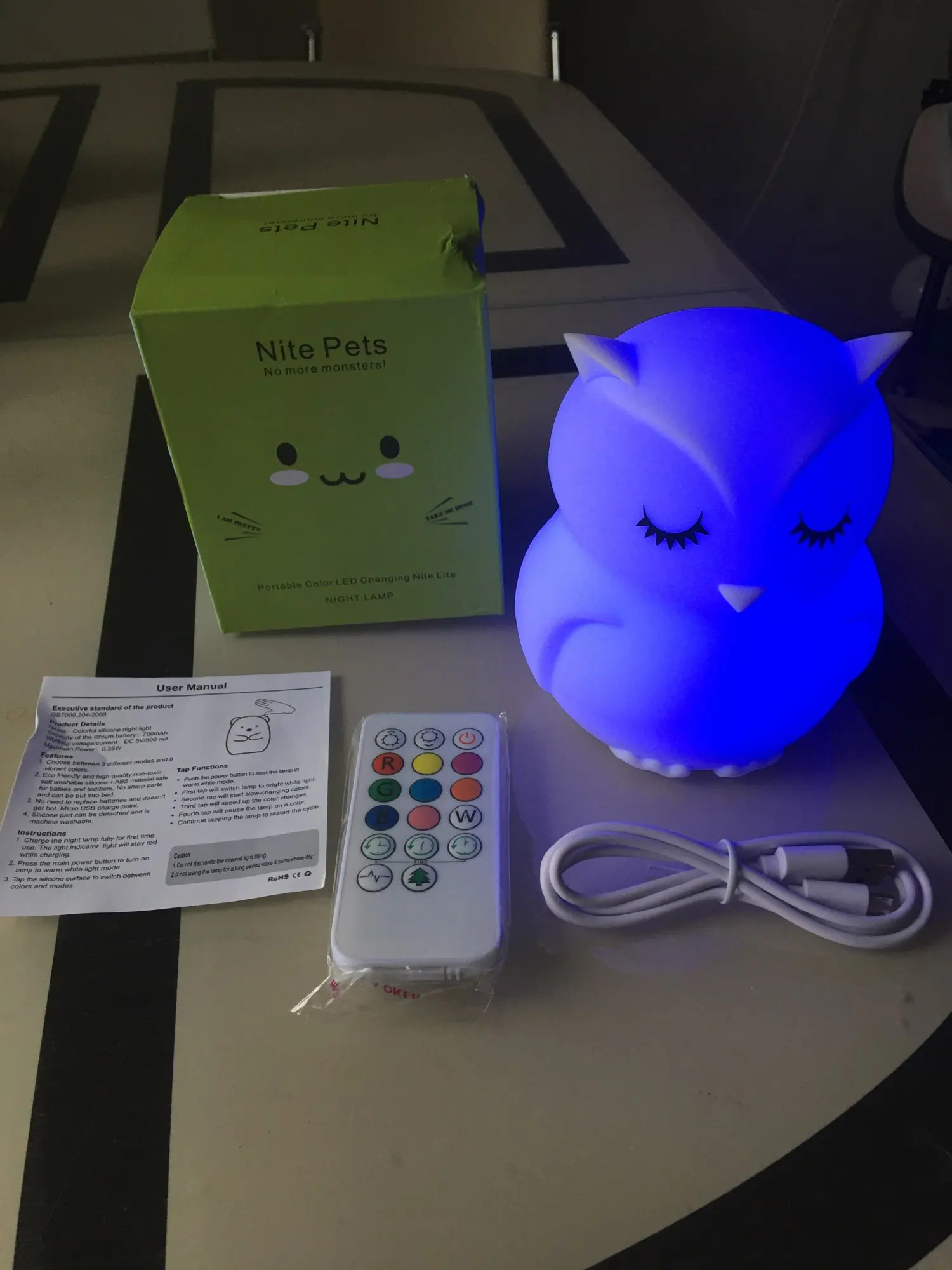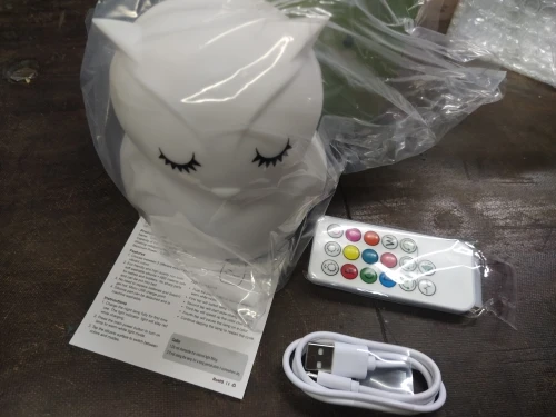 красивая совушка. все работает,все переключается. можно регулировать яркость. дочке очень нравится переключать цвета с пульта. мягкая. шнур для зарядки в комплекте. пришла в Белгородскую область за месяц где-то