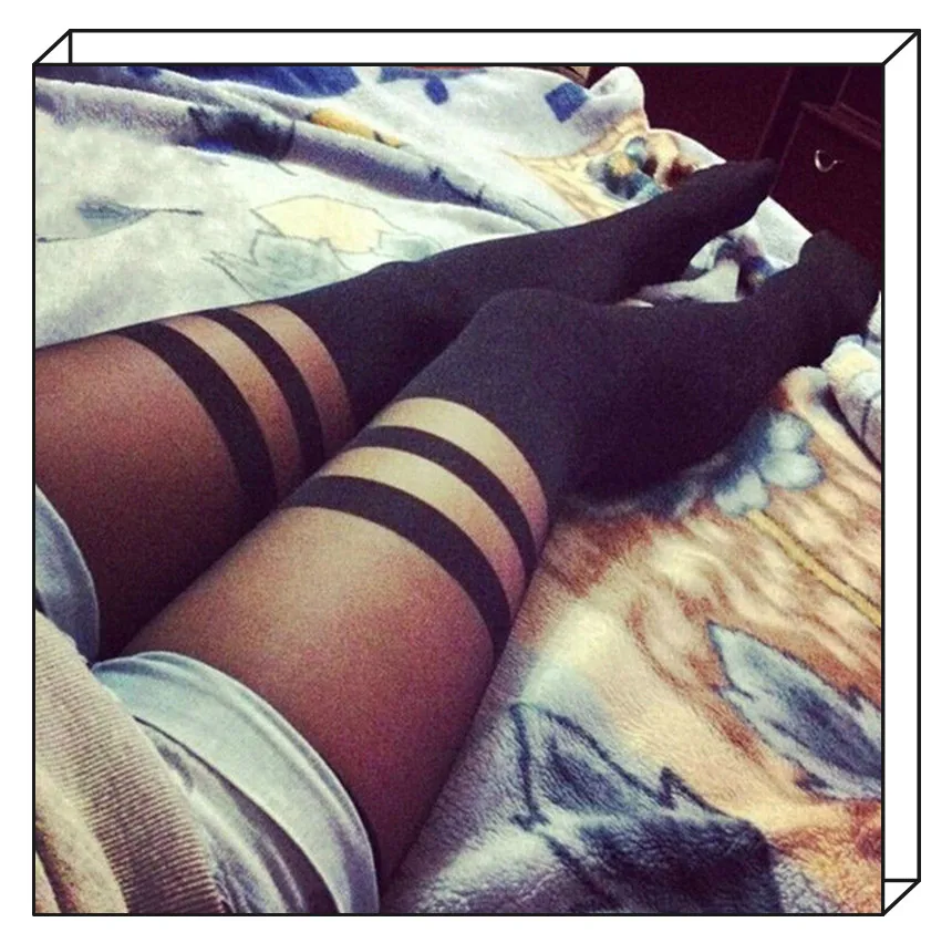 Женские чулки с двойной полосой, ложные колготки на подтяжках, прозрачные обтягивающие колготки выше колена