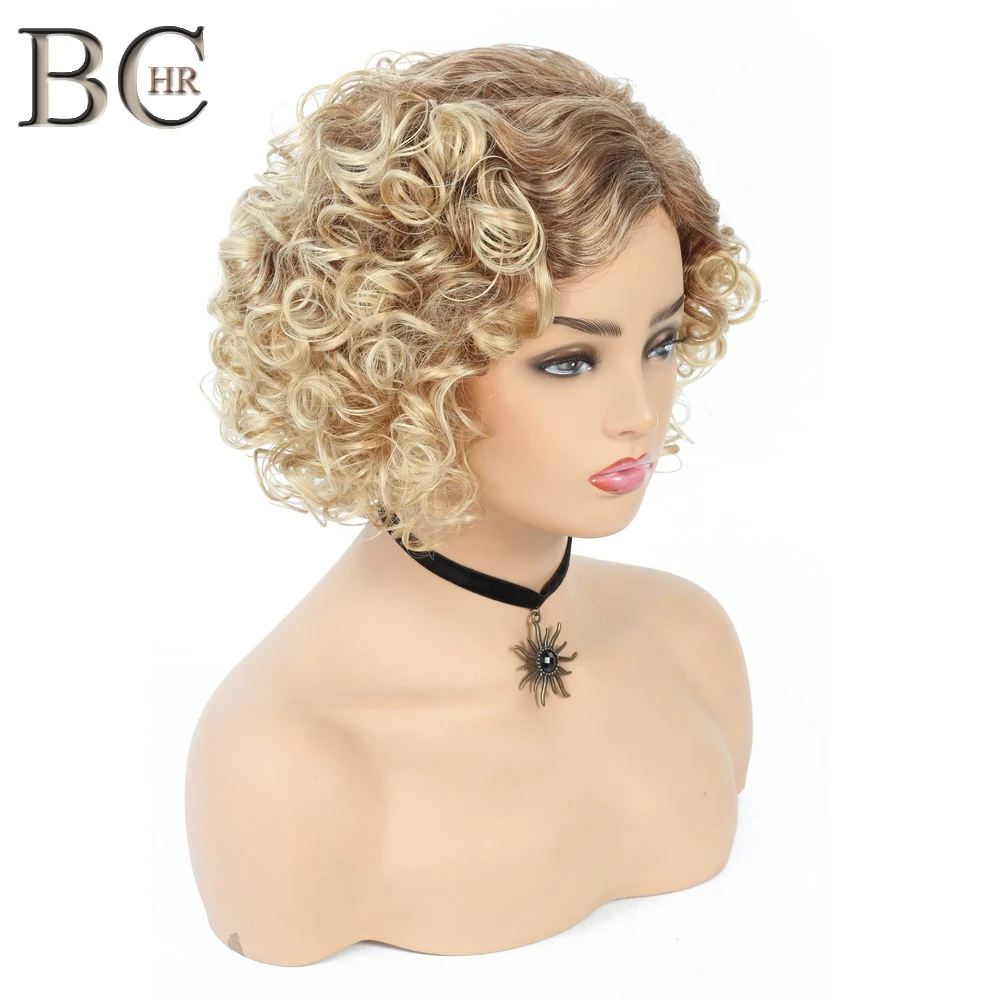Парик BCHR из коротких кудрявых платиновых синтетических волос, 6 дюймов, для чернокожих женщин, для африканских причесок, натуральный светлый