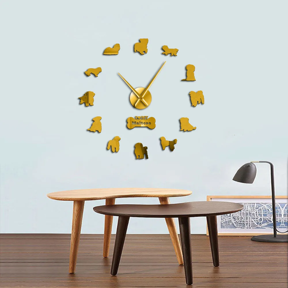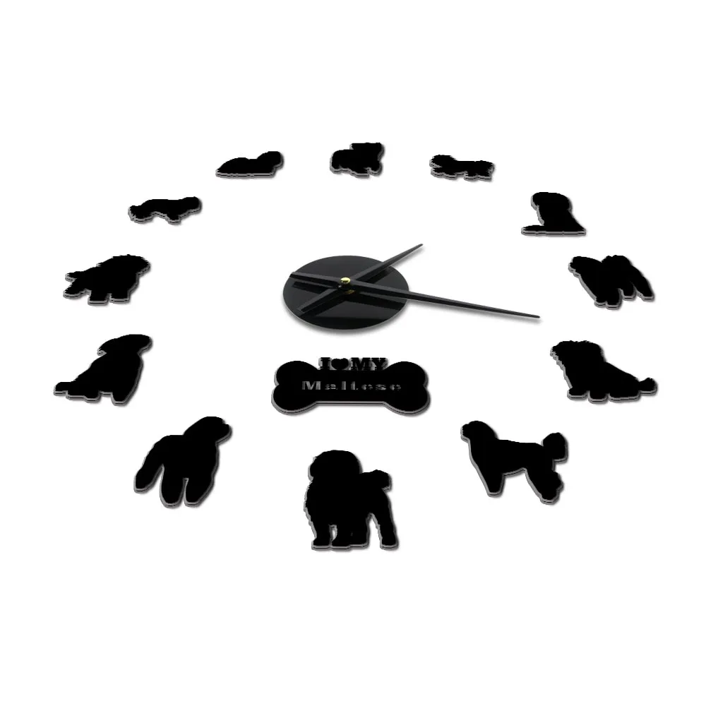 Настенные часы для домашних животных, бескаркасные 3d-часы с изображением мальтийских собак и пород, для самостоятельного изготовления