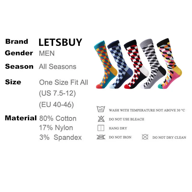 Мужские разноцветные носки LETSBUY, хлопковые носки разных цветов