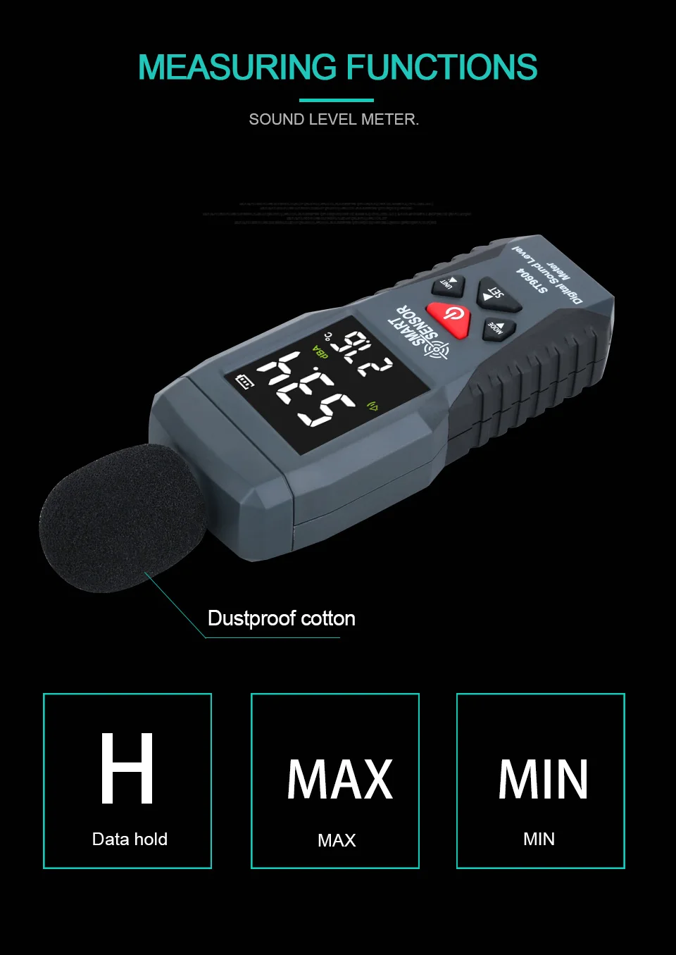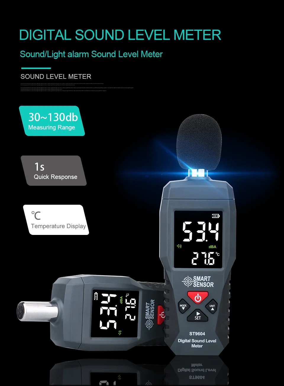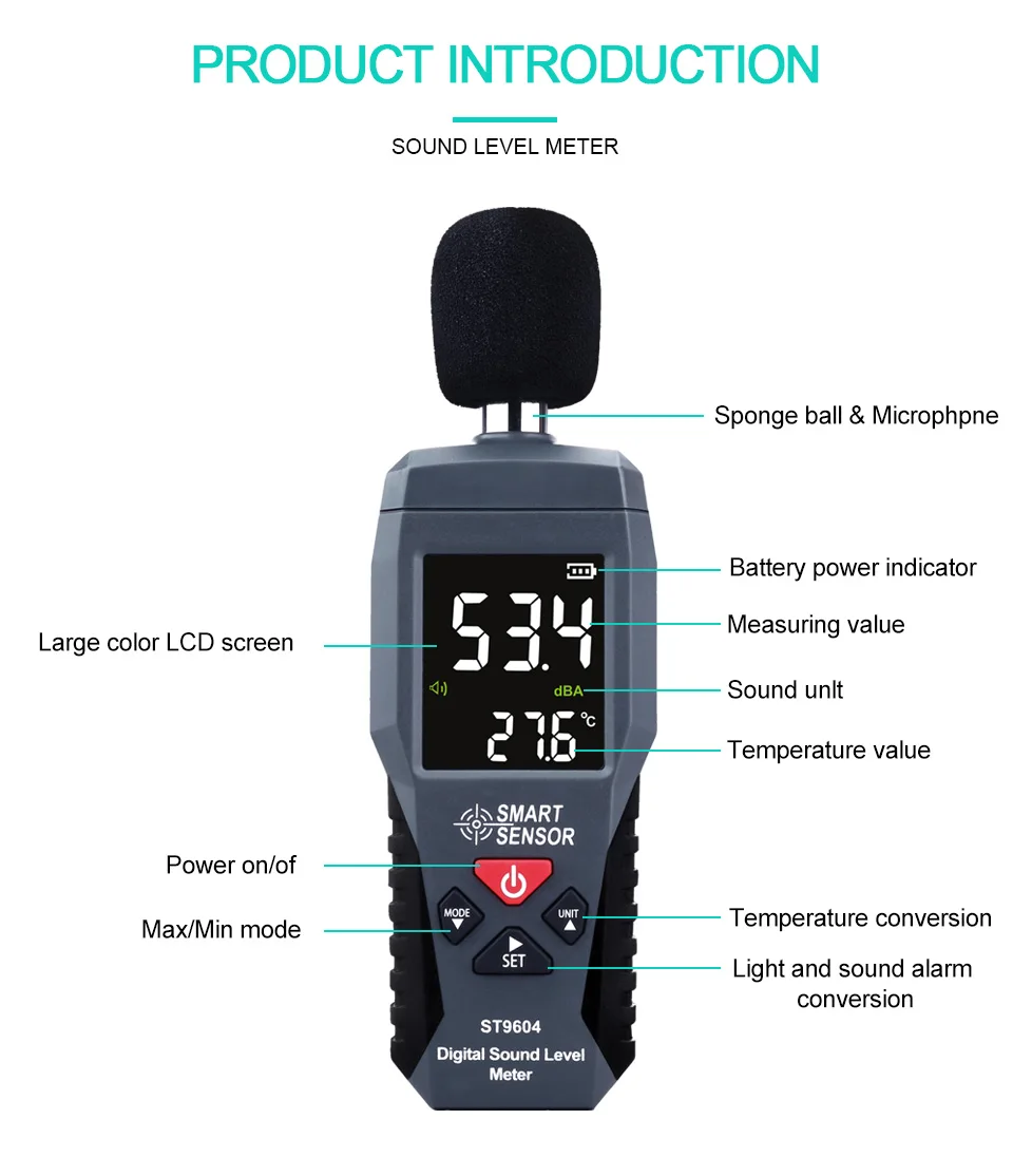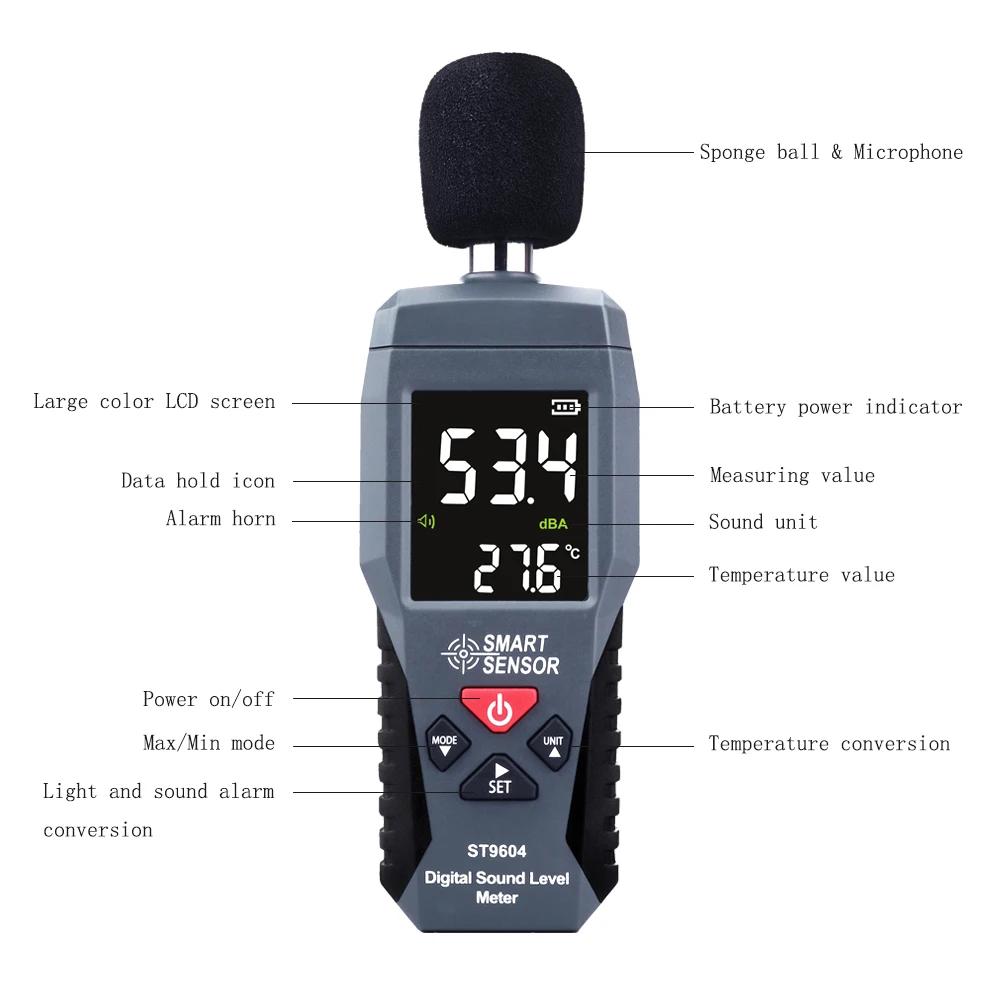 Цифровой шумомер, измеритель уровня шума 30-дБ, децибел дБ, детектор аудио-тестер, диагностический инструмент для метро, умный датчик ST9604