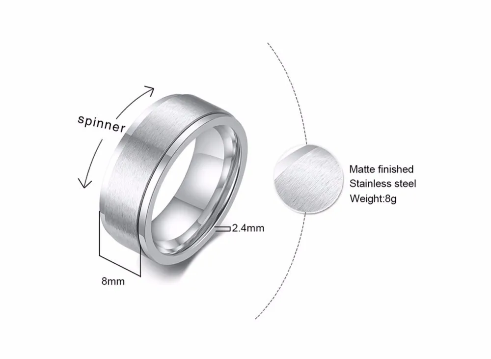 Мужское кольцо со спиннером, 8 мм, черно-белое, из нержавеющей стали