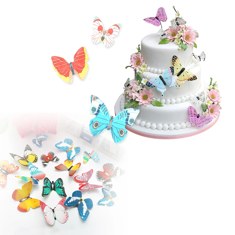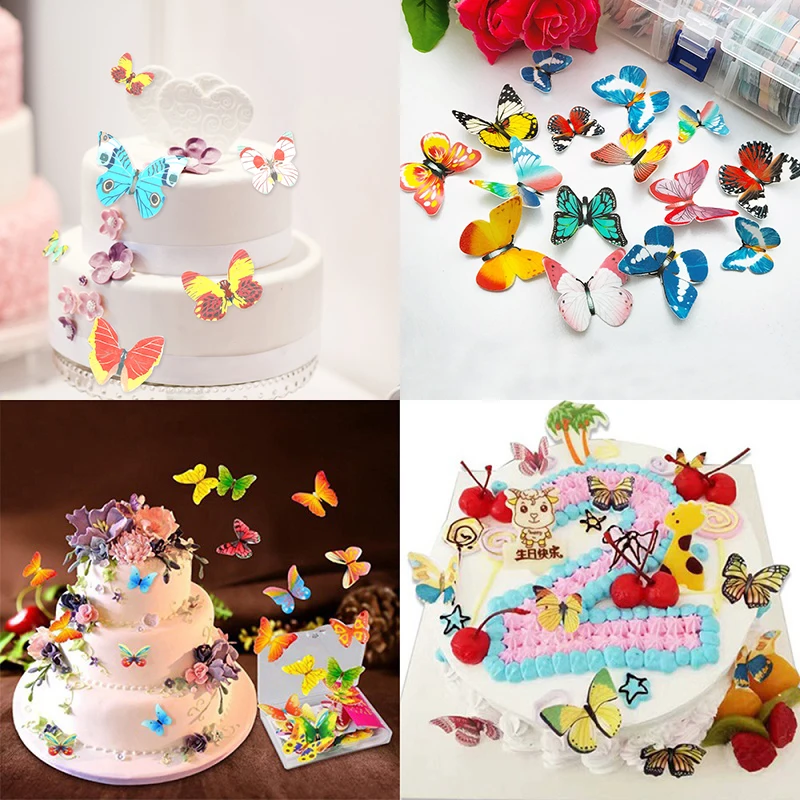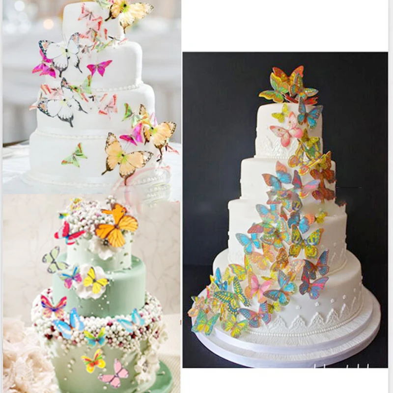 42 шт. смешанные бабочки, съедобные клейкие вафли, рисовая бумага, бабочки, торт, топперы для кексов, украшение для торта на свадьбу, день рождения